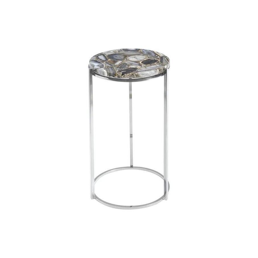 Embracing the beauty of the natural world, this stunning side table features a thick circular slab of Agate in a striking array of blue, black and white tones. Placed on top of a highly polished, stainless steel frame, this contemporary table will add a touch of luxe to any interior. Due to the natural origin of this material, the patterns and hues of the Agate may differ from piece to piece - only resulting in your owning a piece that is totally unique to you. Weight: 6.1 kg.