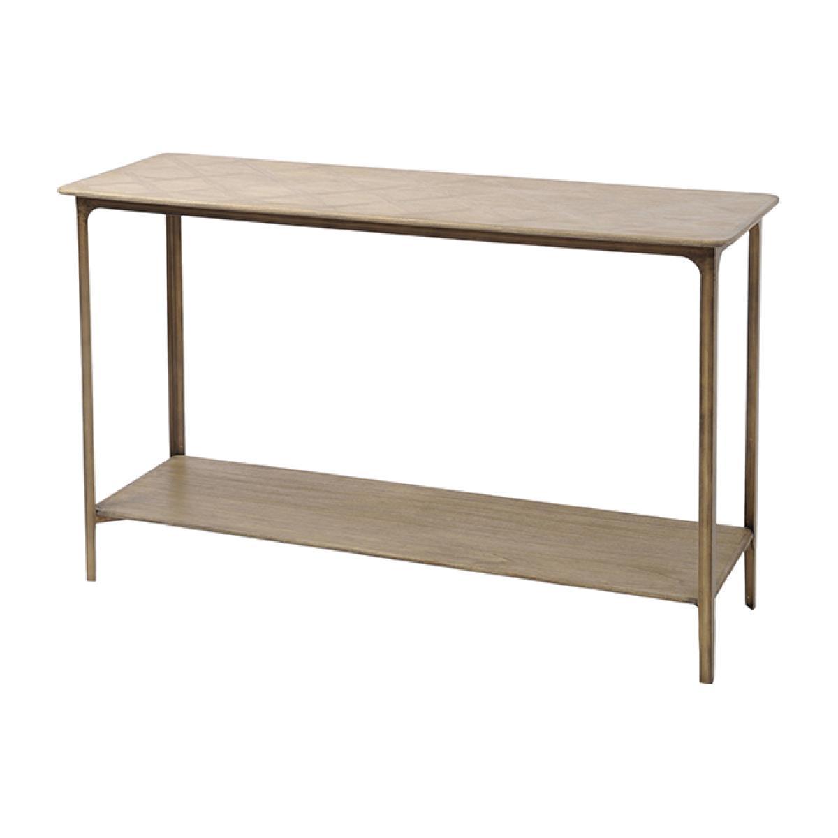 Artisan crafted console table with an iron frame and a mindi wood veneer table top with beautiful cross design. Finished with a bottom shelf for extra storage. Weight: 10. 8 kg. *Moot Trading Ltd is not a lender and acts only as an introducer. The credit product is provided by Klarna Bank AB (publ). Credit is only available to permanent UK residents aged 18 and over, subject to status. Terms and conditions apply. Please note that the following products are not regulated by the FCA: Pay in 30 days and Pay in 3 instalments. Read More.