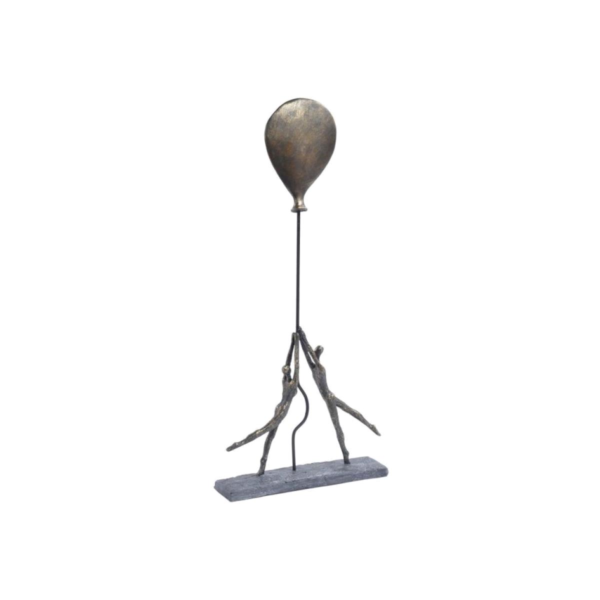 A beautifully romantic depiction of a couple holding a giant balloon, this sculpture has been cast in resin with a textured antique bronze finish. Weight: 0.9kg Dimensions W 26.5 x D 6.5 x H 55.7cm Base material: Polyresin Colour: Bronze