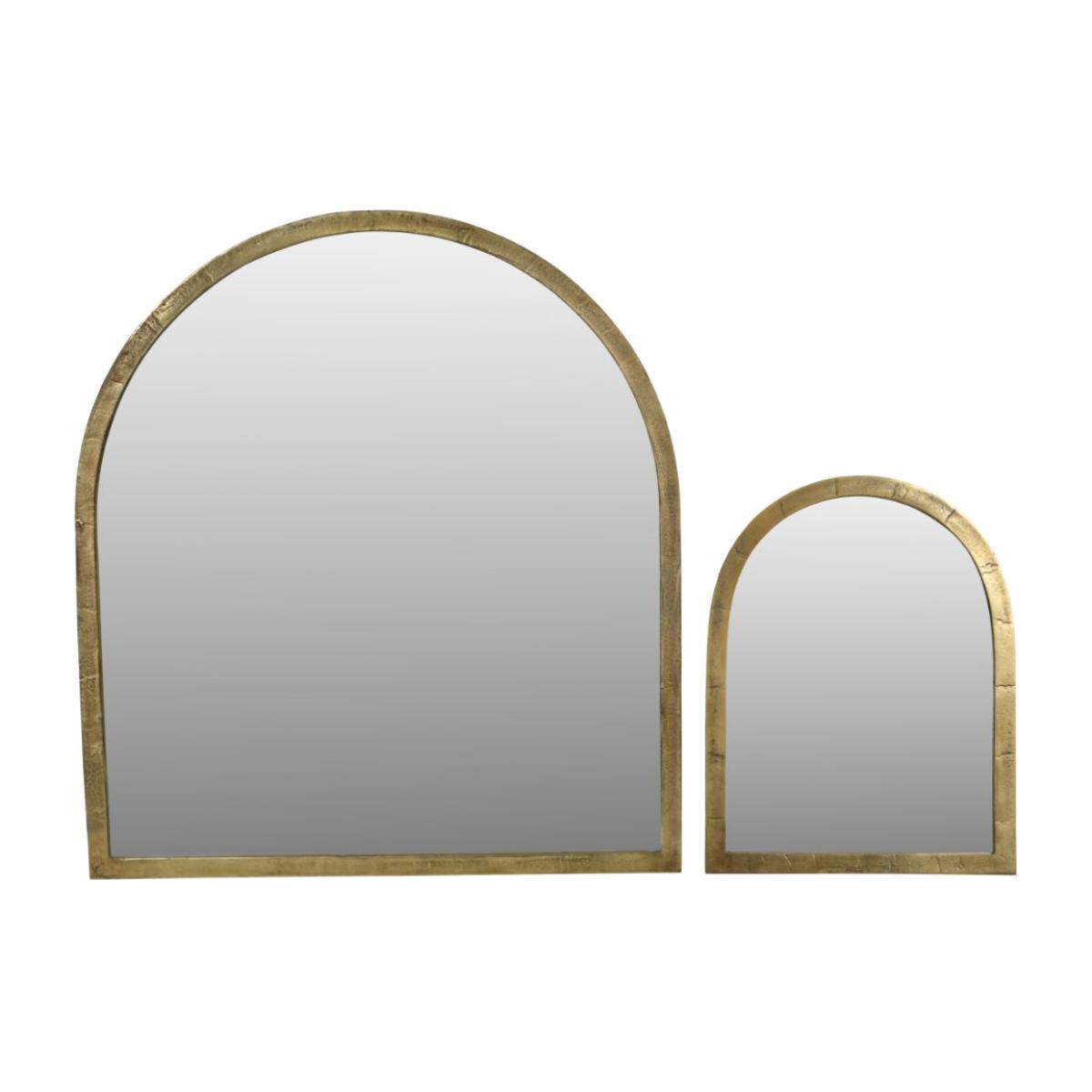 Our Arched Window Mirror is beautifully handcrafted in India using traditional methods; each piece is cast in sand, ensuring natural organic variations from piece to piece, which are intrinsic to the design of this product. It is finished in a brass colour. Available in two sizes, this larger mirror measures 101cm tall and 91cm wide, and it can be safely hung on a keyhole on the back of the frame. Wall fixings not included.