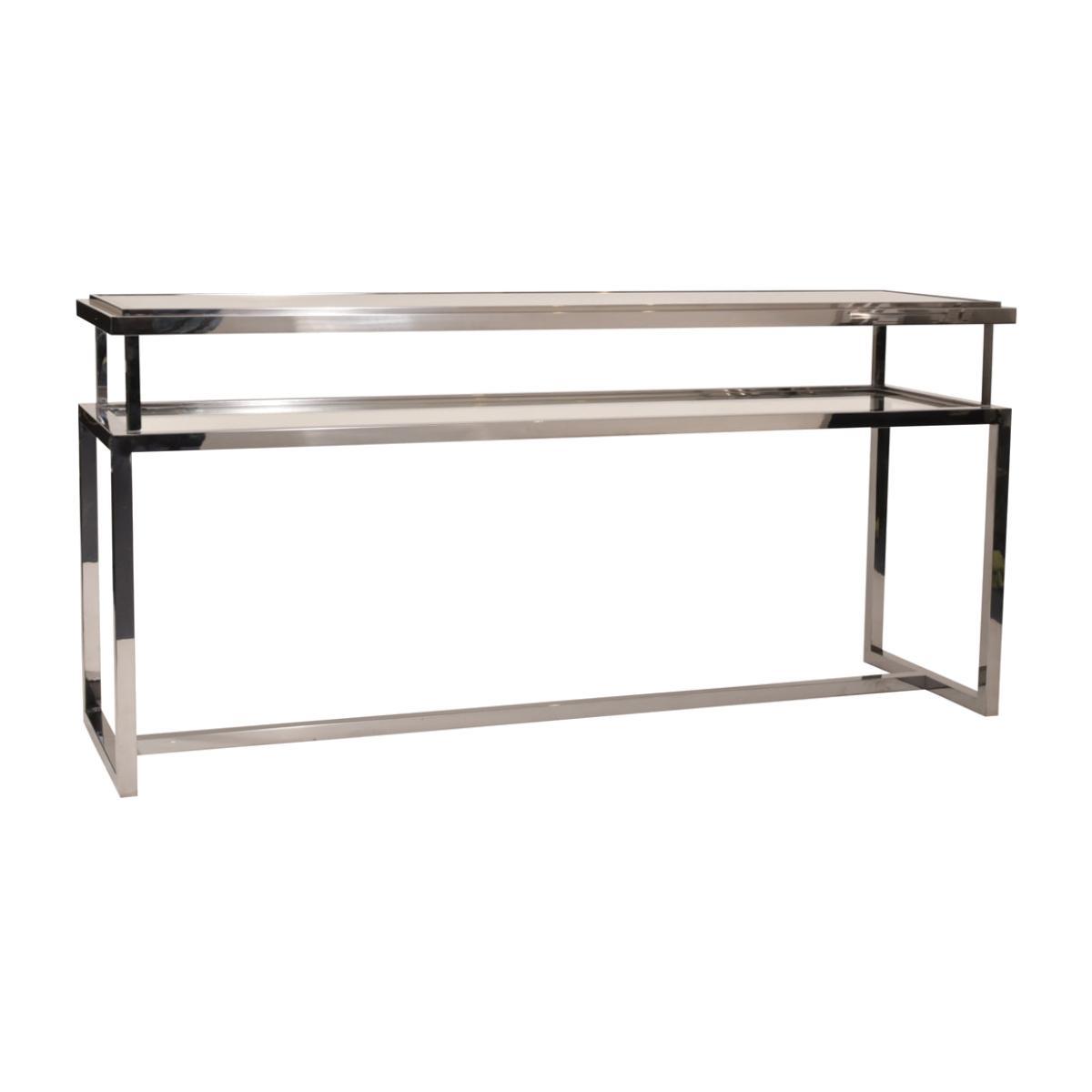Sleek and effective as a console table for a contemporary living area, this stunningly attractive Libra Belgravia piece is created from stainless steel and glass. Measuring H: 76 x W: 160 x D: 45 cm, the table's highlight is its striking yet simple character. Prop a contemporary ornament or plant or piece of artwork on the table to elevate it and create a talking point in your modern living space. The clear glass and perfect sizing will complement any style of décor, from classic to modern to bold colourings, and it will set off the room in all its splendour. *Moot Trading Ltd is not a lender and acts only as an introducer. The credit product is provided by Klarna Bank AB (publ). Credit is only available to permanent UK residents aged 18 and over, subject to status. Terms and conditions apply. Please note that the following products are not regulated by the FCA: Pay in 30 days and Pay in 3 instalments. Read More.