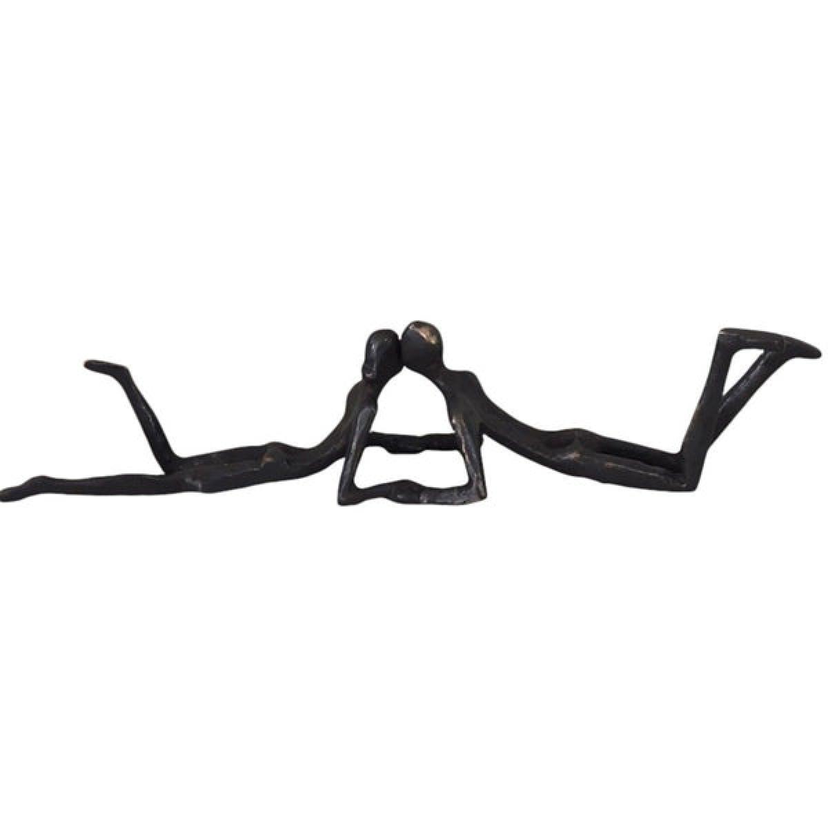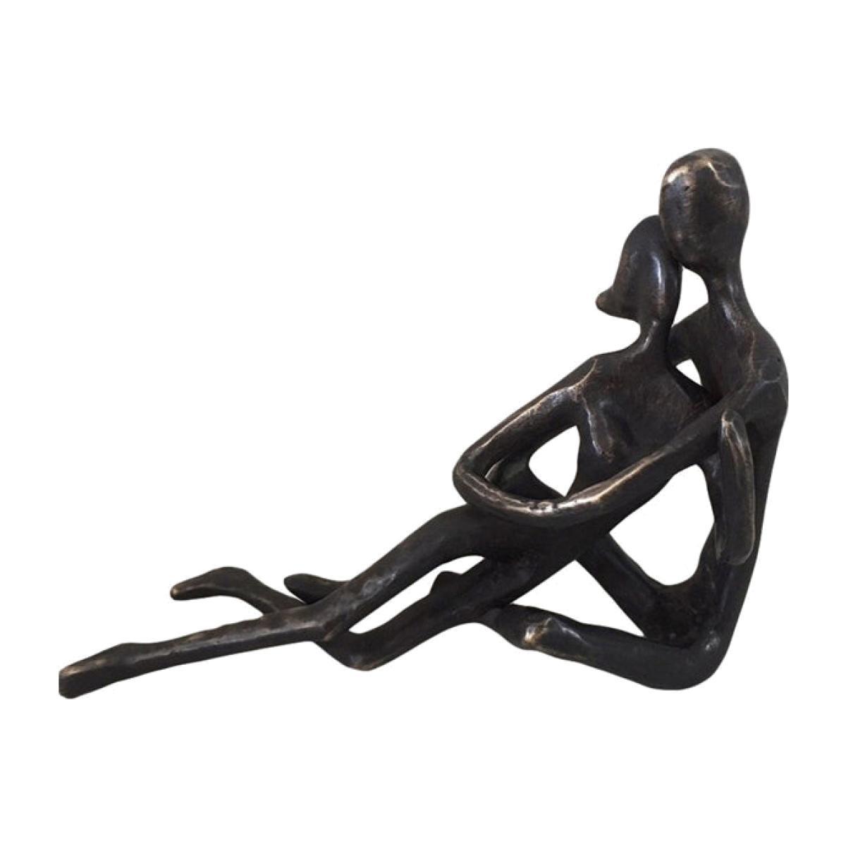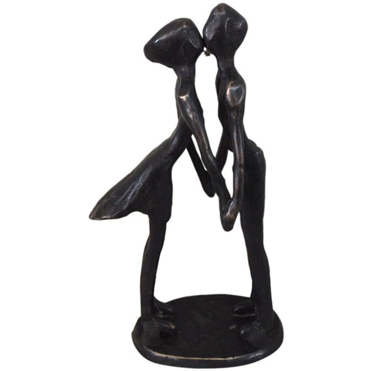 I love the modern, minimalist appeal of this kissing sculpture, as it injects a sense of intimacy and movement into any space. It works particularly well in contemporary interiors or loft-style apartments, where clean lines and subtle detailing are key. For practical styling, consider placing it on a mantelpiece, sideboard, or coffee table as a focal point, perhaps with a contrasting surface like marble or matte black to enhance its dark bronze finish. To keep the sculpture from competing with other decor, pair it with simple, understated surroundings - neutral tones work best - allowing its sculptural form to stand out without overwhelming the space.