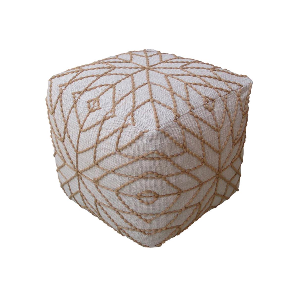 Rest tired legs or perch upon our Corowa pouffe. Measuring a convenient 40cmx40cmx40cm, this cube pouffe is hand woven in India using traditional techniques. It features a striking geometric design in natural tones of Beige and Natural linen colours, and pairs perfectly with any neutral interiors scheme. It is filled with durable poly-beans and has a removable cover for easy cleaning, accessed by a zip on the underside of the pouffe. Dimensions: H: 40 x W: 40 x D: 40 cm Materials: 70% Cotton, 30% Damru Polyester Assembly Required: No Care Instructions: Spot clean only. No harsh abrasives or cleaners