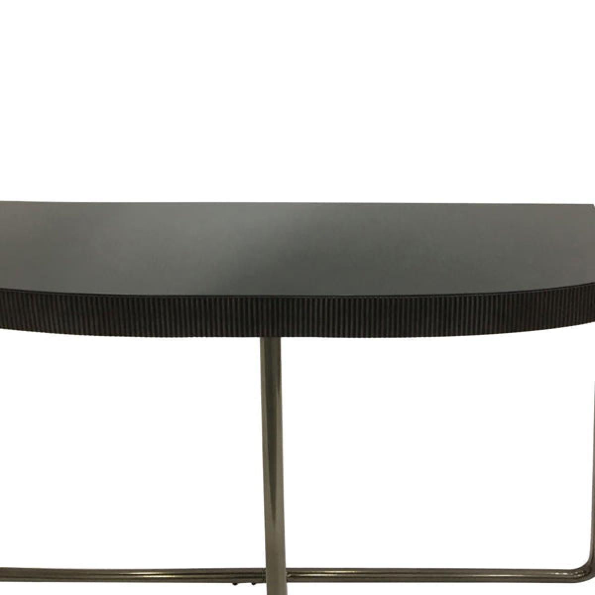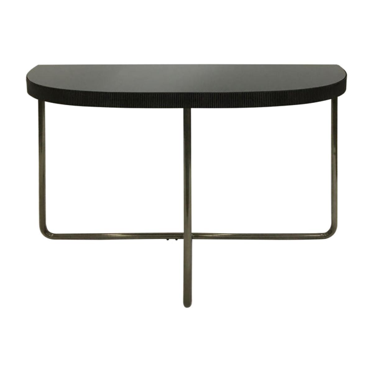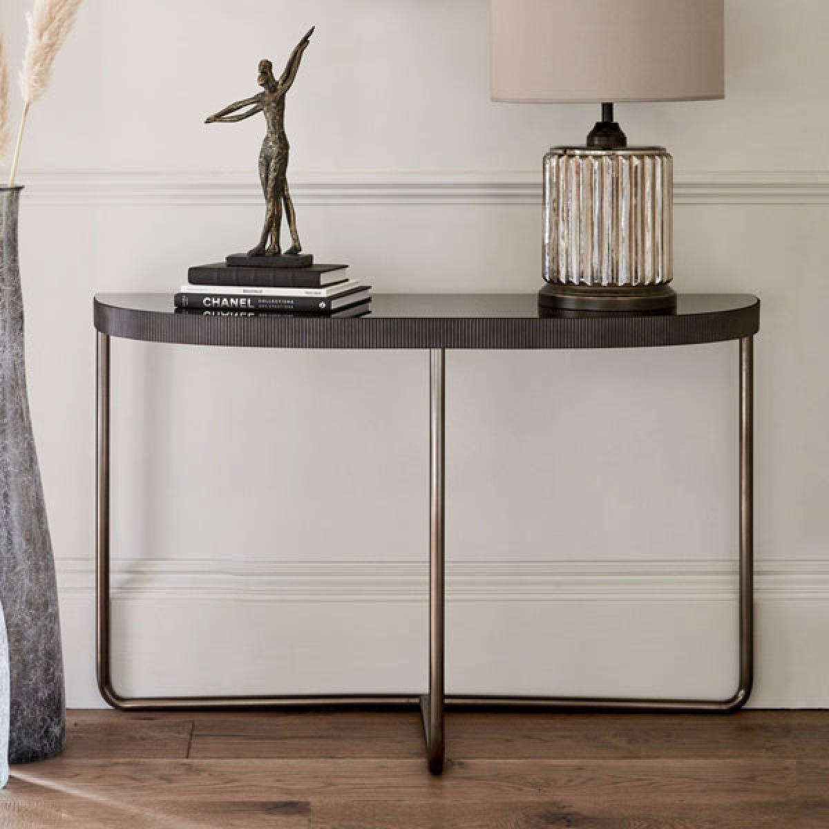 The beautifully crafted Libra Knightsbridge Half Moon console table with black tinted glass will be an excellent addition to the hallway or entrance of your home. Store any must-have items close to hand with this exquisite piece. Alternatively, use it to display a nice vase or lamp. It boasts a half-moon shape with midnight hued glass that gives it a contemporary feel. This quality table can be easily paired with any other furniture in your home and because of its modern look will fit well in any contemporary living space. It measures 78cm in height, 122cm in width and 43.1cm in depth. Dimensions: H: 78 x W: 122 x D: 43.1 cm