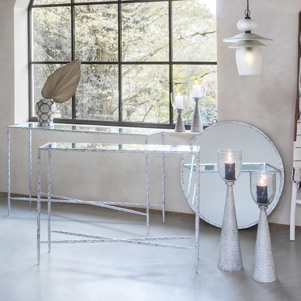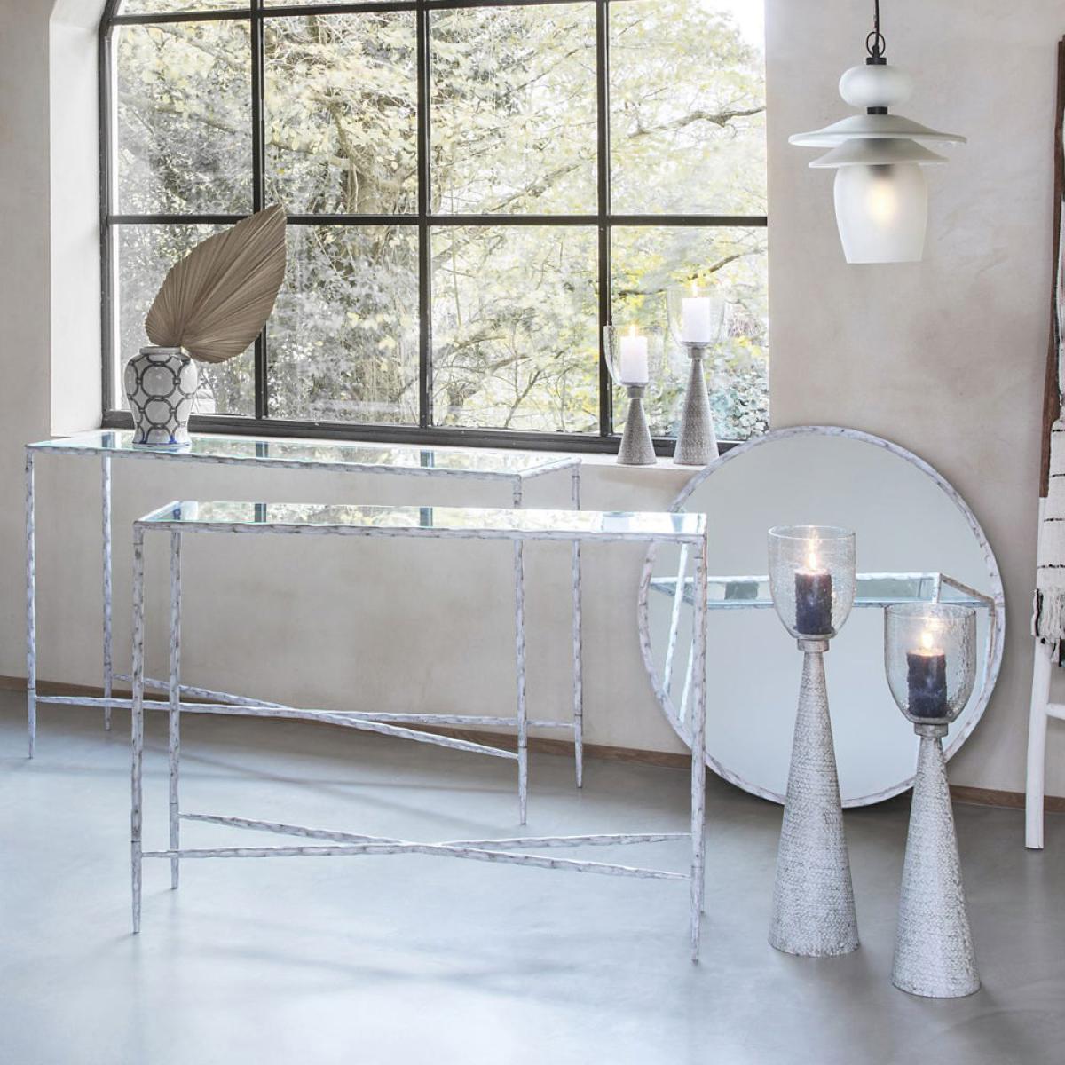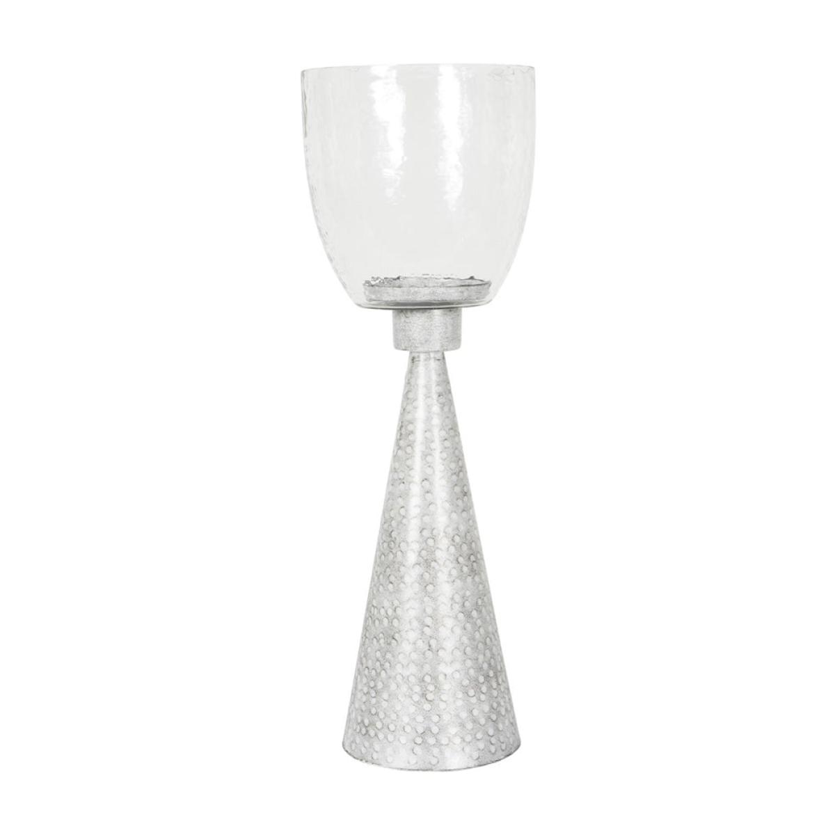 Our Sandbanks Hurricane lanterns feature hand finished bases in a hammered chalky white and clear glass hurricane tops. The Sandbanks collection takes inspiration from Industrial design and manufacturing. Simple self assembly is required and hurricanes are available in a variety of sizes and colours. Dimensions: Small - H: 36 x W: 15 x D: 15 cm Large - H: 45 x W: 15 x D: 15 cm Materials: 70% Iron, 30% glass Assembly Required:Yes Care Instructions: Dust with a dry, soft cloth
