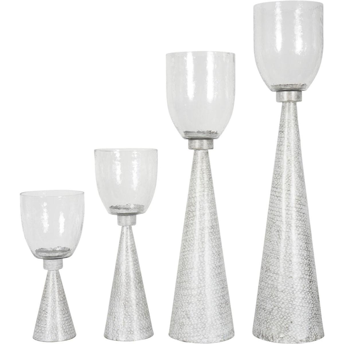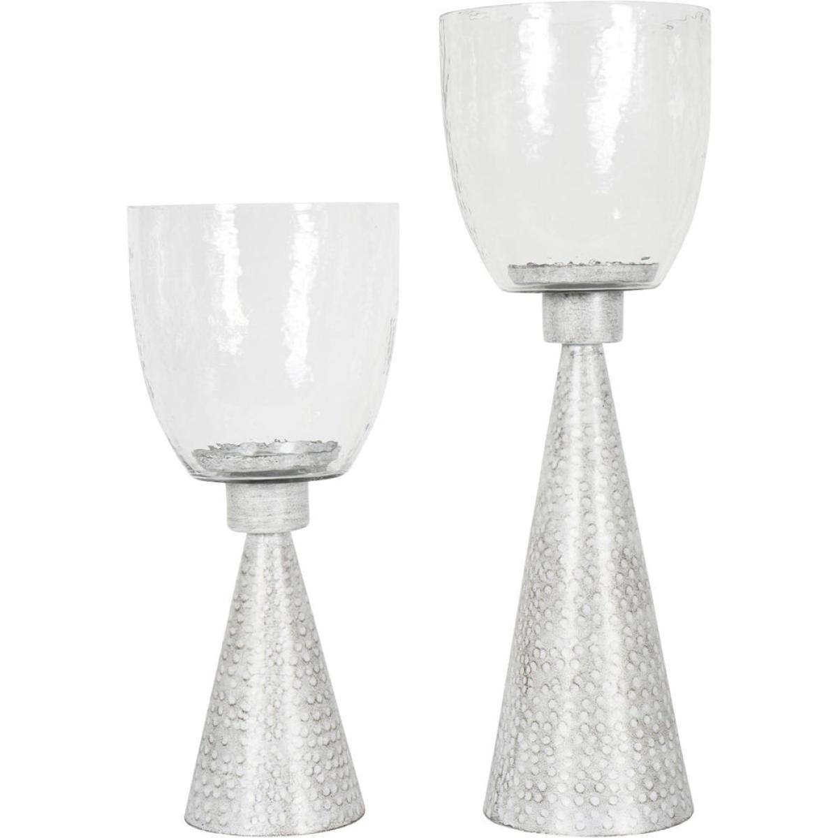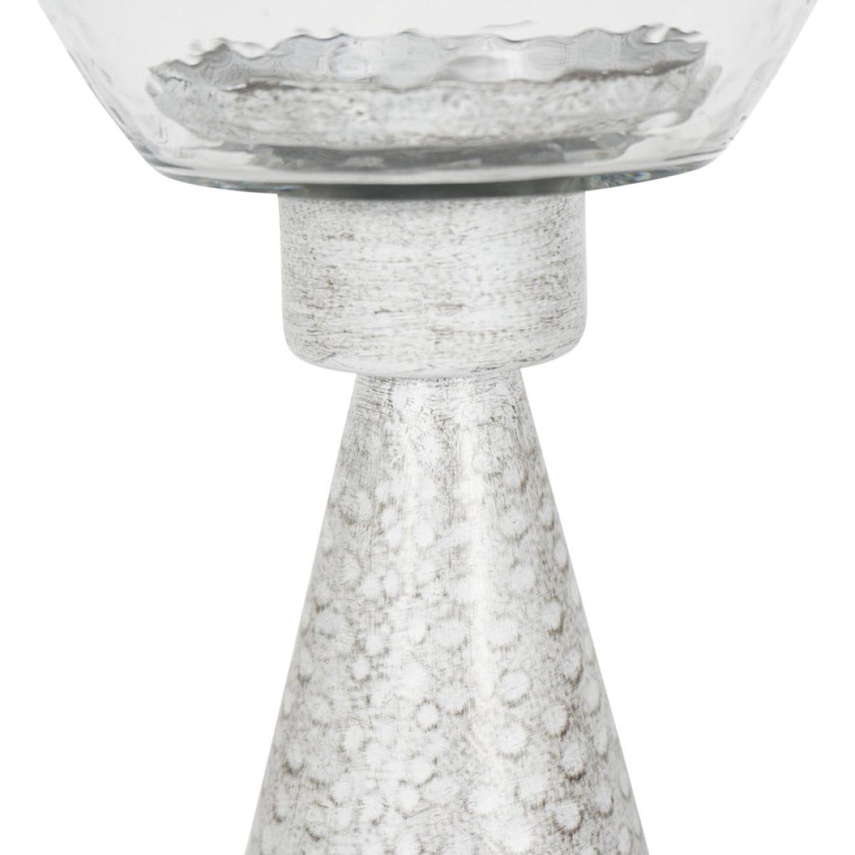 Our Sandbanks Hurricane lanterns feature hand finished bases in a hammered chalky white and clear glass hurricane tops. The Sandbanks collection takes inspiration from Industrial design and manufacturing. Simple self assembly is required and hurricanes are available in a variety of sizes and colours. Dimensions: Small - H: 36 x W: 15 x D: 15 cm Large - H: 45 x W: 15 x D: 15 cm Materials: 70% Iron, 30% glass Assembly Required:Yes Care Instructions: Dust with a dry, soft cloth
