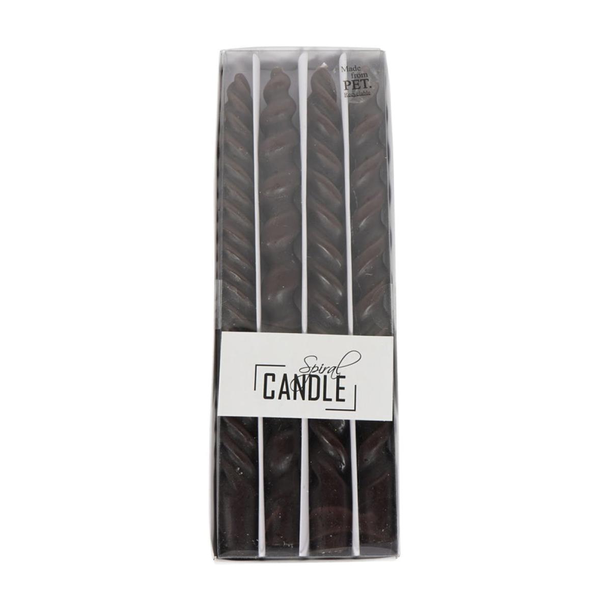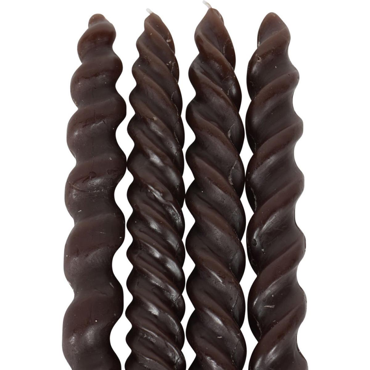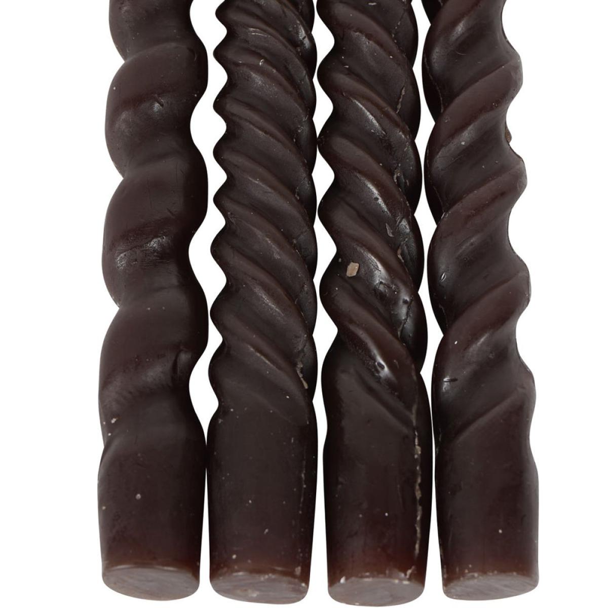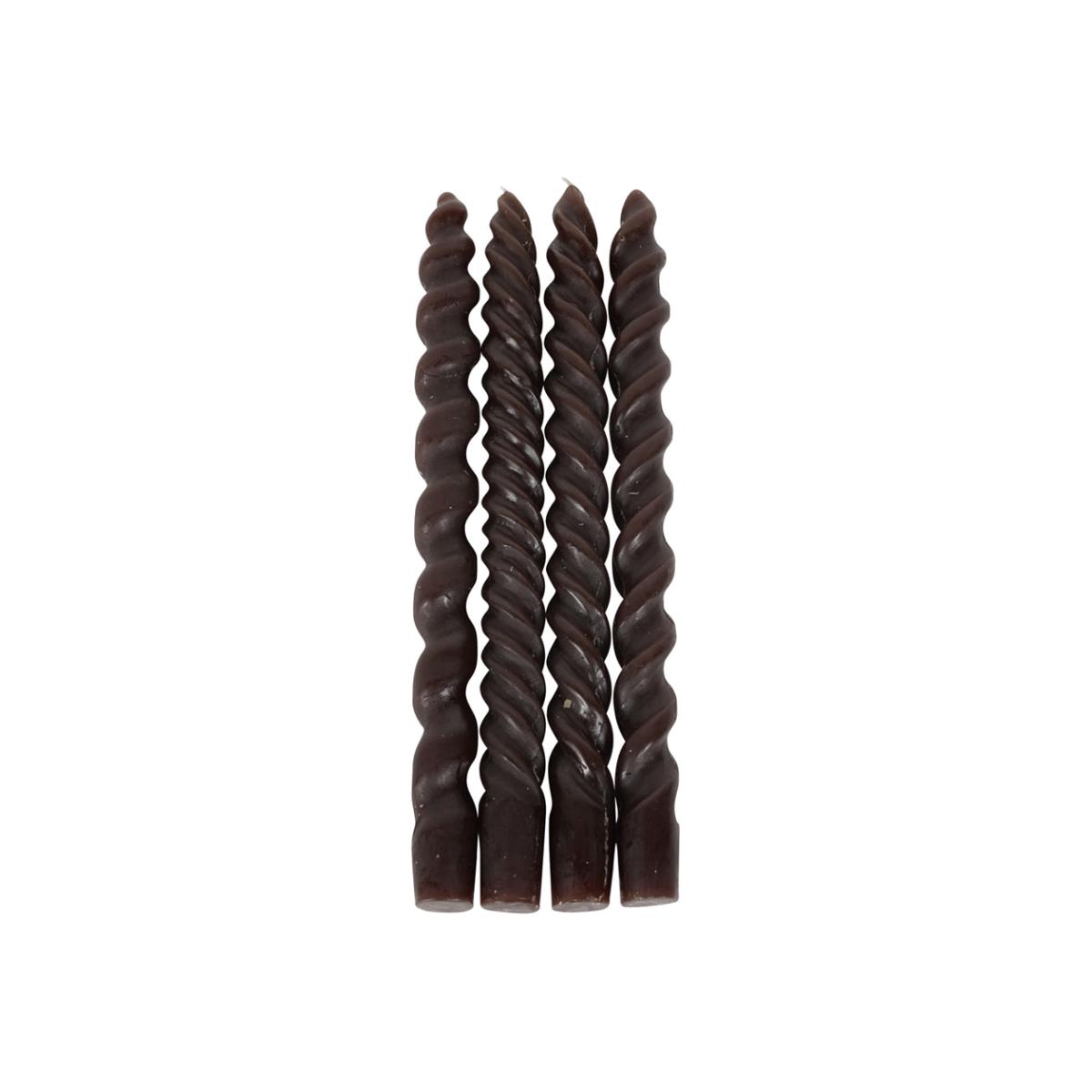 Set the mood with these twisted taper candles, made in a moody brown wax in different types of twists, these candles burn cleanly and arrive as a set of 4 in a gift box. Dimensions: H: 31 x W: 2 x D: 2 cm Materials: 100% wax Assembly Required: No Care Instructions:Dust with a dry, soft cloth