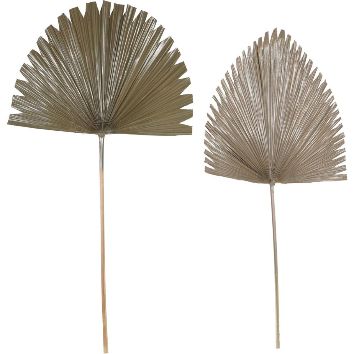 For those who enjoy natural decor pieces, these Natural Wide Fan Palm Leaves in Brown tone are perfect for you. Textured leaves with long stems make these Palm Leaves ideal for use in your interior space, either standing alone in a vase, or paired with other dried flowers. Due to being a natural product, slight variations in colour, shape and size will occur. They stand 96cm tall and measure 50cm wide. Dimensions: H: 96 x W: 50 x D: 1 cm Materials: Palm Leaf Assembly Required: No Care Instructions:Dust with a dry, soft cloth