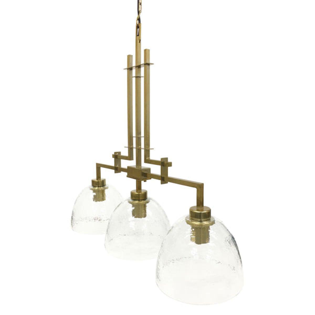Transform your space with the Libra Congleton pendant light fitting. With strong, perpendicular strokes, sharp angles, and slim lines, the Congleton light is evocative of elegant Art Deco design an. View More. Transform your space with the Libra Congleton pendant light fitting. With strong, perpendicular strokes, sharp angles, and slim lines, the Congleton light is evocative of elegant Art Deco design and is a striking piece to add to your interiors, complementing both modern and vintage-inspired elements in your décor. Featuring three beautifully frosted glass pendant light fittings suitable to use with E27 60W bulbs, the piece is completed with a metallic frame in a warm champagne-coloured finish. Full of interest and excitement, this light is perfect to use to spread a comforting glow throughout living rooms, bedrooms, hallways, and dining rooms.