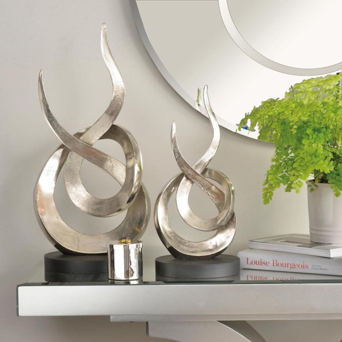 This unusual sculpture is the perfect piece for bringing a contemporary twist to your space. Beautifully designed to capture the movement of intertwined flames, the large version of this piece will sit perfectly as a centrepiece on any console table or coffee table. Alternatively, the smaller sculpture will stand proudly on any windowsill, shelf or ledge. Finished in a raw silver aluminium that contrasts beautifully with its sleek black base, its neutral colour palette will complement any interior colour scheme. Perfect for any monochrome or grey themed space. *Moot Trading Ltd is not a lender and acts only as an introducer. The credit product is provided by Klarna Bank AB (publ). Credit is only available to permanent UK residents aged 18 and over, subject to status. Terms and conditions apply. Please note that the following products are not regulated by the FCA: Pay in 30 days and Pay in 3 instalments. Read More.
