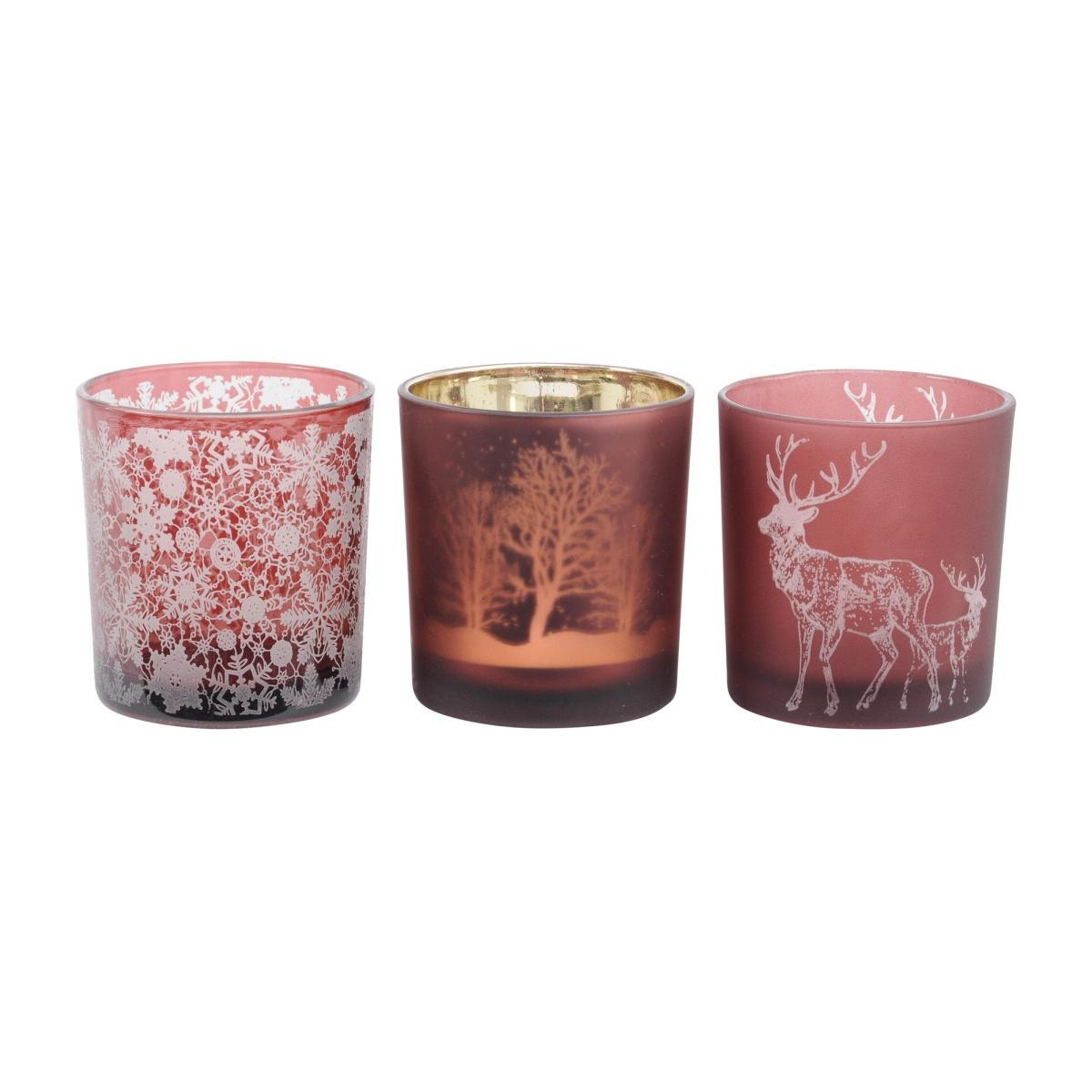 Libra Festive Small Set Of 3 Tealight Holders Red