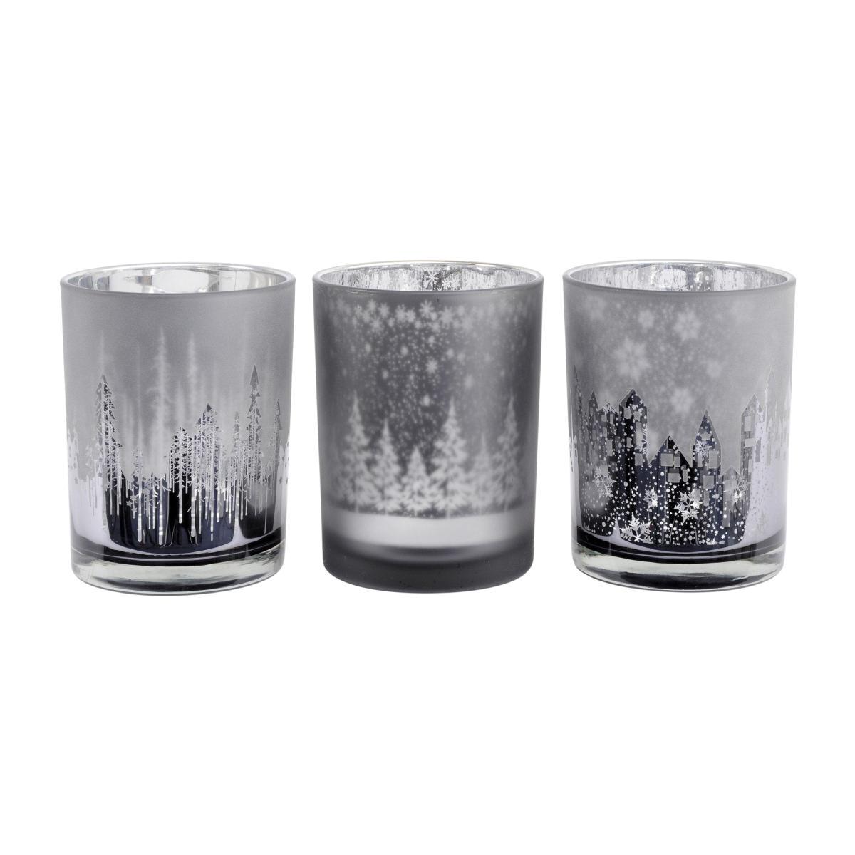 Libra Festive Trees Set Of 3 Large Votive Holders Silver And Smoke