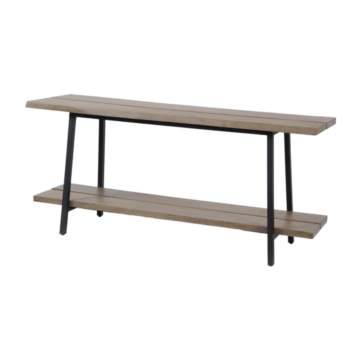 Foundry rectangular mindi wood console table. The raw edge design of the console table top and steel frame give an industrial feel to this simple and modern piece. A timeless addition to any home. *Moot Trading Ltd is not a lender and acts only as an introducer. The credit product is provided by Klarna Bank AB (publ). Credit is only available to permanent UK residents aged 18 and over, subject to status. Terms and conditions apply. Please note that the following products are not regulated by the FCA: Pay in 30 days and Pay in 3 instalments. Read More.