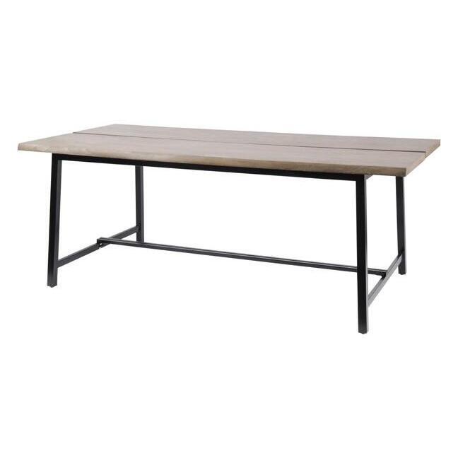 Foundry rectangular mindi wood dining table. The raw edge design of the table top and steel frame give an industrial feel to this simple and modern piece. A timeless addition to any home.