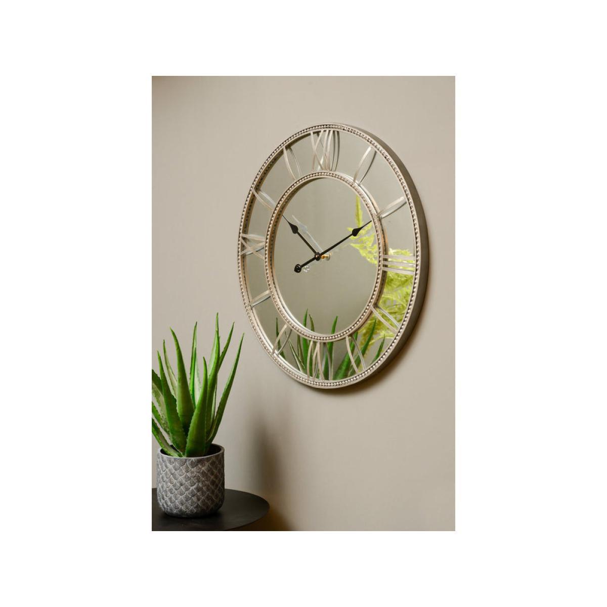 Curved beaded wall clock made out of iron with a distressed grey finish and a mirrored clock face. Grey, Silver,Antique,Iron Glass. Weight: 3. 7kg. *Moot Trading Ltd is not a lender and acts only as an introducer. The credit product is provided by Klarna Bank AB (publ). Credit is only available to permanent UK residents aged 18 and over, subject to status. Terms and conditions apply. Please note that the following products are not regulated by the FCA: Pay in 30 days and Pay in 3 instalments. Read More.