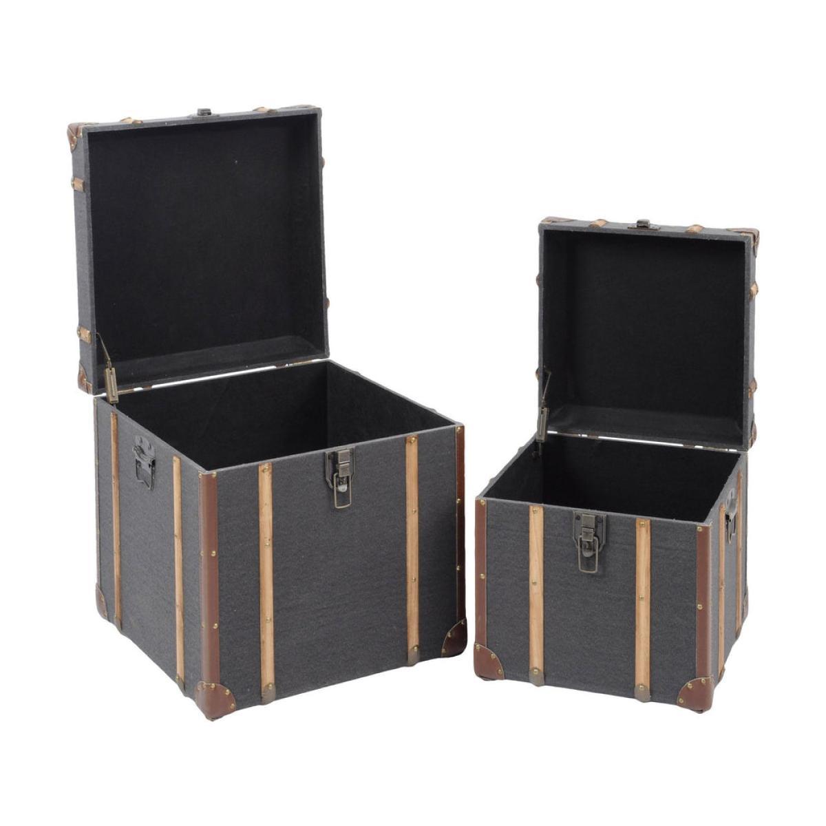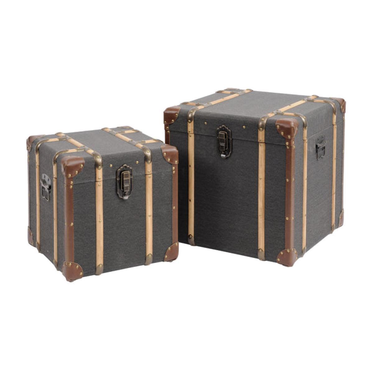 Set of 2 storage trunks upholstered in stylish grey coloured fabric with wood side panelling and antique side handles. D. Weight: 19 kg. *Moot Trading Ltd is not a lender and acts only as an introducer. The credit product is provided by Klarna Bank AB (publ). Credit is only available to permanent UK residents aged 18 and over, subject to status. Terms and conditions apply. Please note that the following products are not regulated by the FCA: Pay in 30 days and Pay in 3 instalments. Read More.