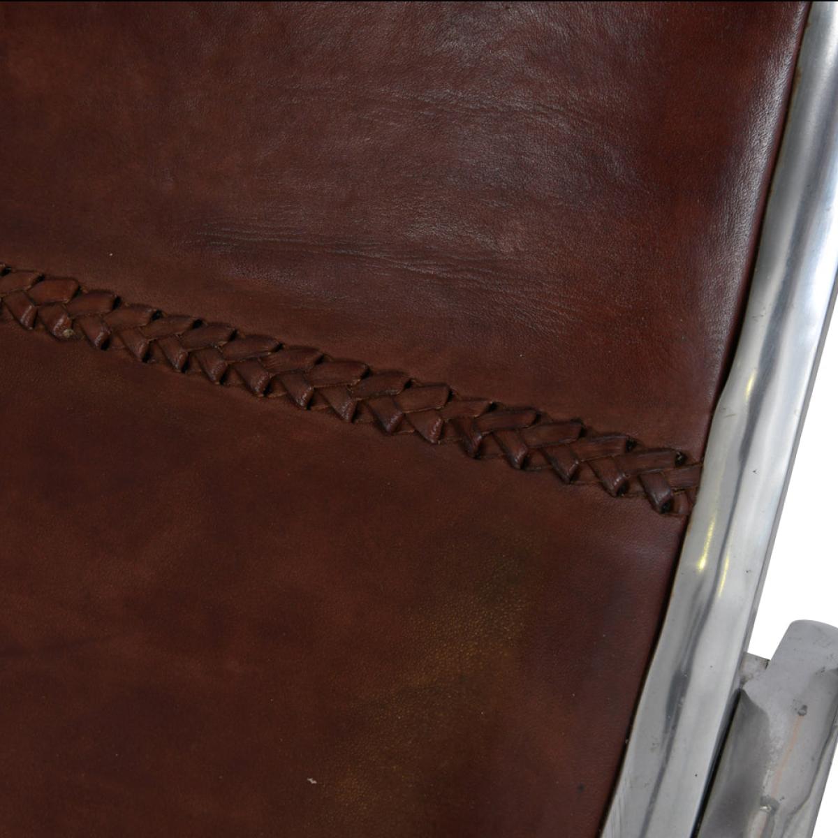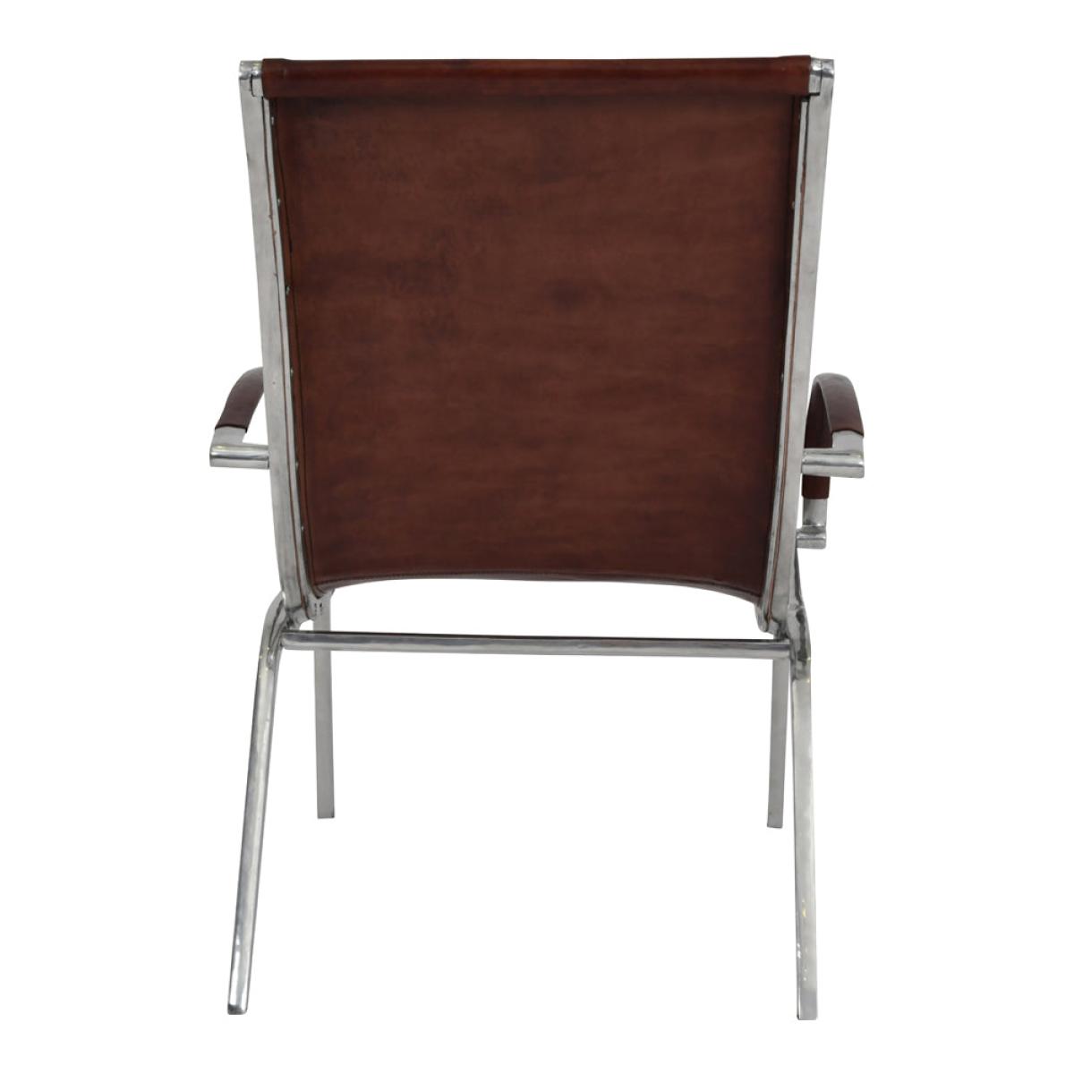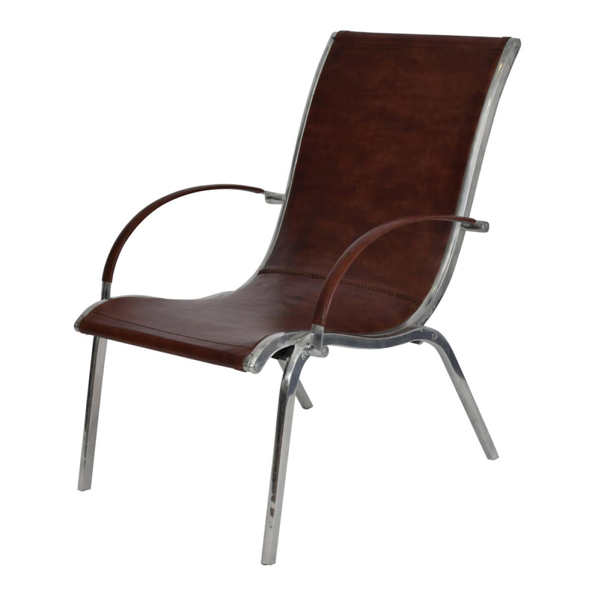 The Libra Iconic Bolero is an armchair crafted from a rich dark brown leather with a sturdy aluminium frame to combine classic styles. Detailed stitching across the leather panels gives the piece a. View More. The Libra Iconic Bolero is an armchair crafted from a rich dark brown leather with a sturdy aluminium frame to combine classic styles. Detailed stitching across the leather panels gives the piece a hand finished and unique feel and the curved chair and leather-bound armrests ensure you will be comfortable. #. #Perfect as a stylish accent chair in your lounge, dining room or even bedroom, this piece has a retro touch due to its shape and style and the shiny metal chair frame also brings an industrial vibe. The chair’s dimensions are width 66 cm x depth 90 cm x height 96 cm.