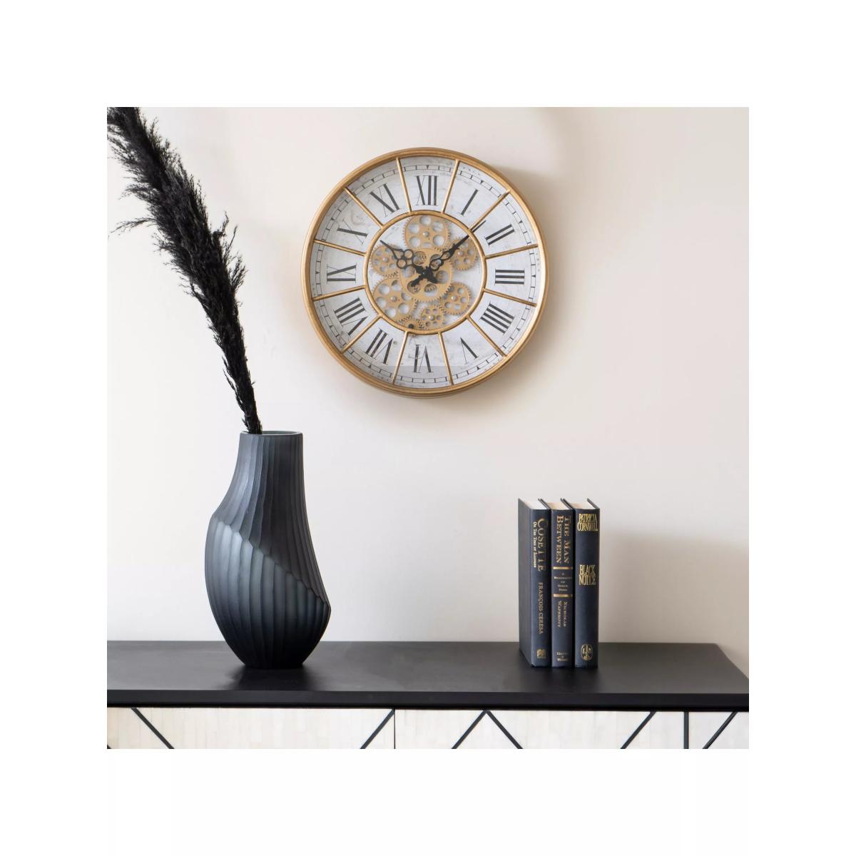 I love this skeleton wall clock for its sleek combination of modern and industrial elements, making it a versatile piece that adds visual interest without overwhelming a space. The black and gold colour palette lends itself well to contemporary, vintage, or eclectic interiors, especially when paired with contrasting textures like leather, wood, or matte finishes. Practical styling tips include mounting it above a sideboard, fireplace, or in a feature wall area to create a striking focal point. To keep the look balanced, keep surrounding decor minimal, allowing the clock to stand out as a statement piece. Its Roman numerals and visible gears add a touch of timelessness, making it suitable for both traditional and modern schemes.