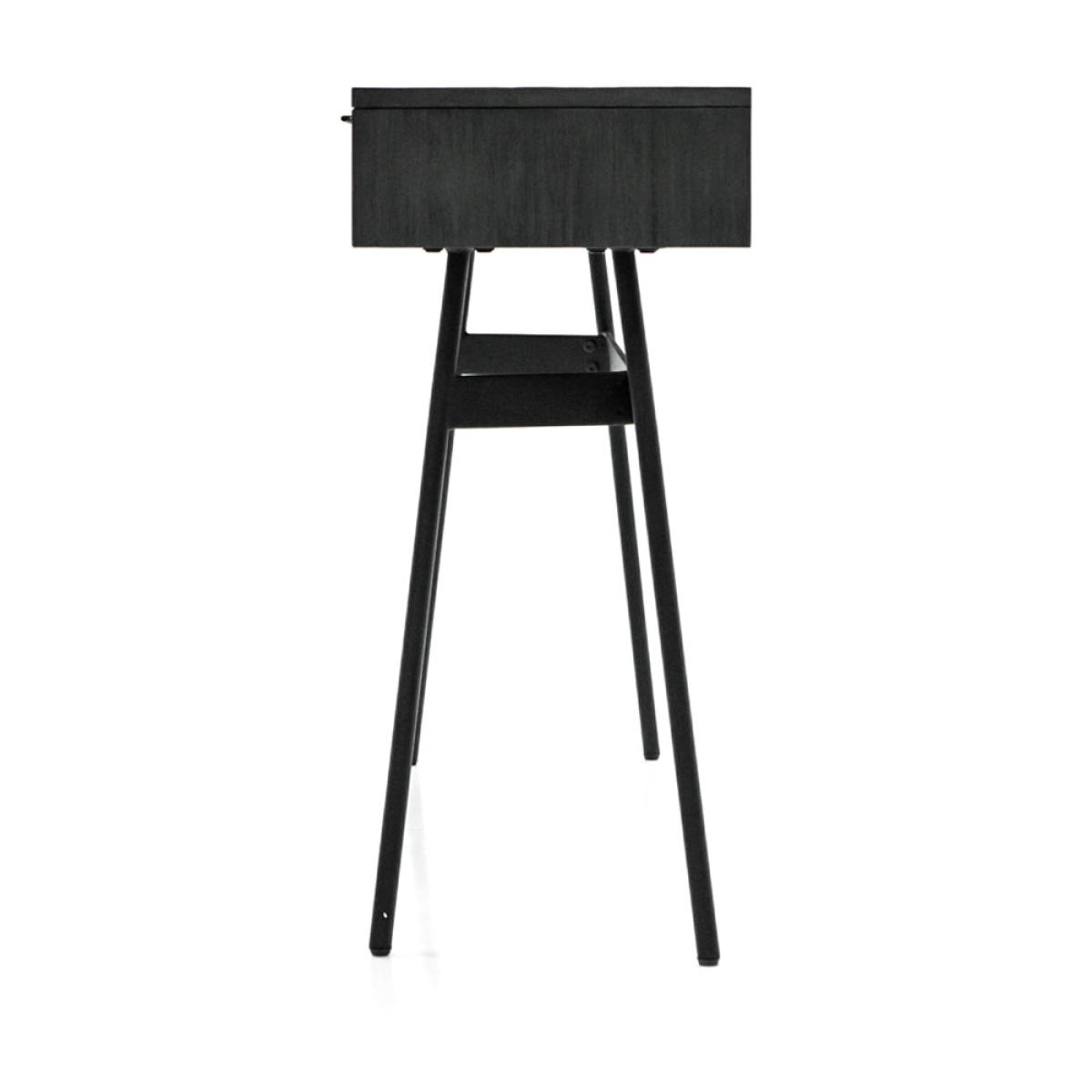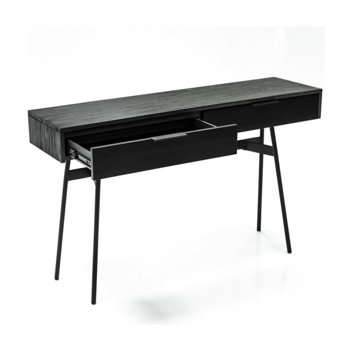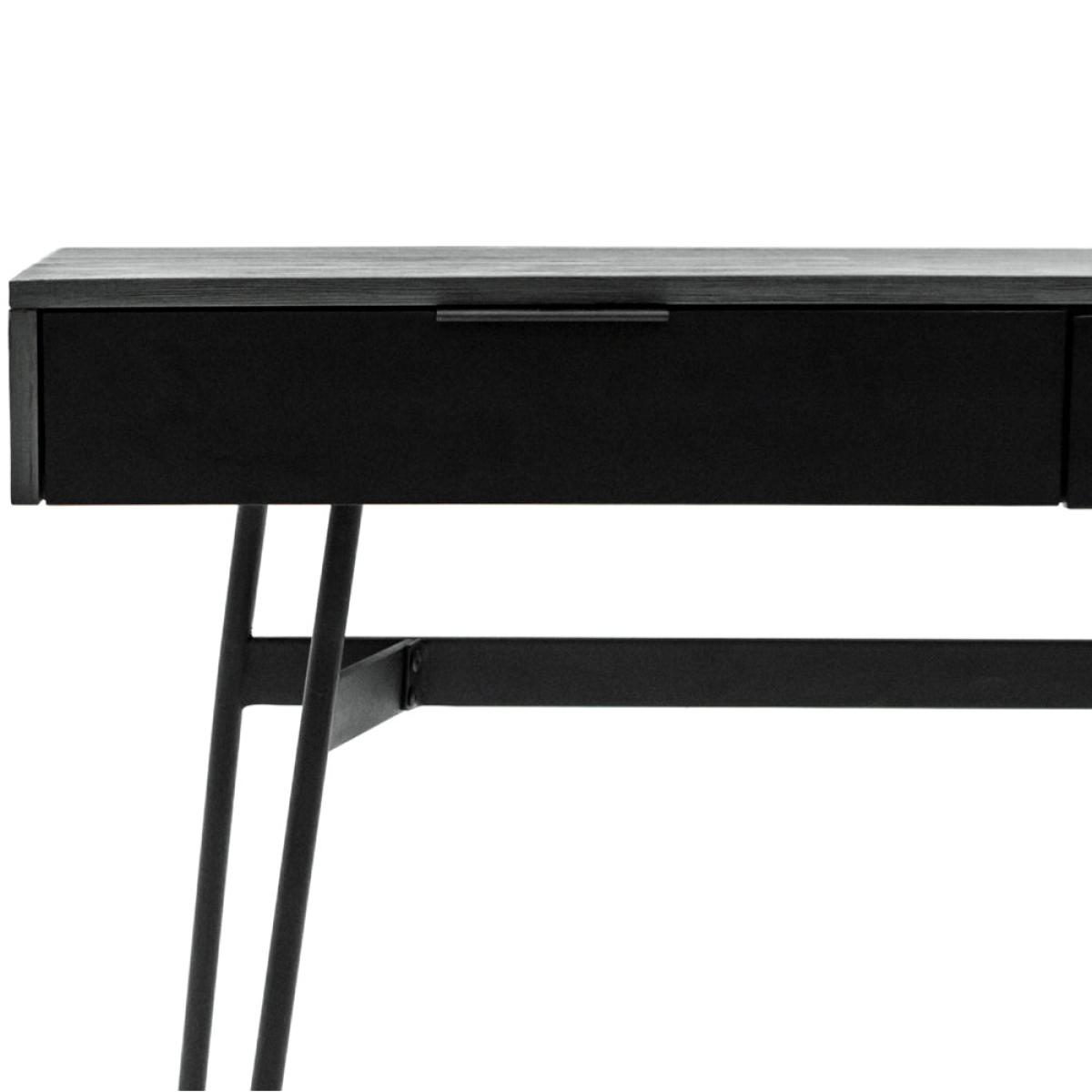 Add storage and style to your hallway with the Libra Interiors Bronx Black Acacia 2 Drawer Console Table. This console table features a sleek black acacia top with two drawers and a metal base, creating a modern and functional look. With its spacious drawers, it offers ample storage for keys, gloves, and other hallway essentials, helping you keep your space neat and organized. Crafted from solid acacia, MDF veneer, and metal, it is as durable as it is stylish. Whether used as a hallway table or an entryway catch-all, the Bronx Console Table is sure to enhance the functionality and aesthetic of your home. Elevate your hallway decor with the sleek and practical Bronx Console Table from Libra Interiors.