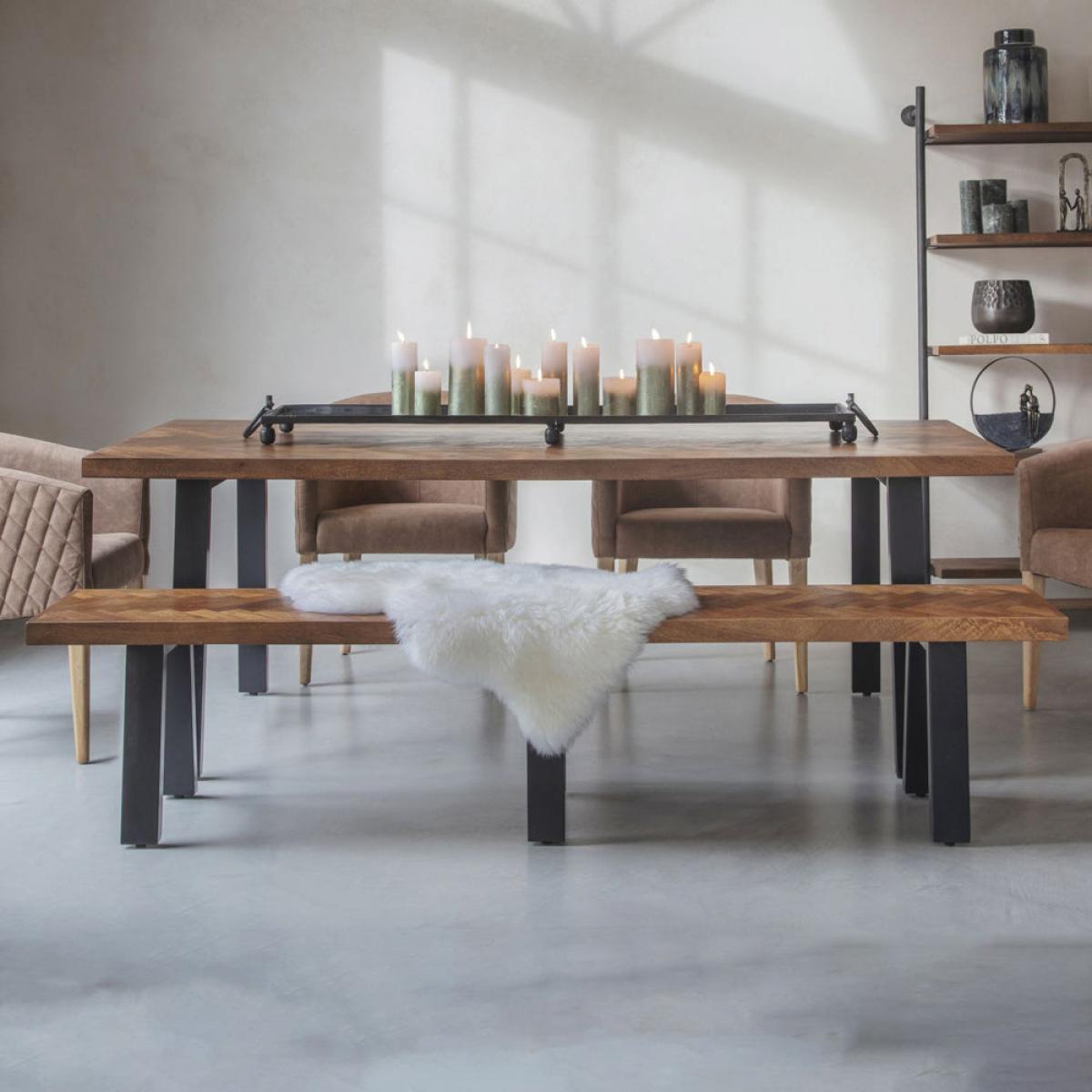 Add rustic charm to your dining area with the Libra Interiors Burnham II Herringbone Wooden Bench 220cm. This bench features a classic herringbone pattern on its wooden seat, adding texture and visual appeal to your space. With its natural finish, it complements a variety of decor styles, from farmhouse to industrial. Measuring 220cm in length, it provides ample seating for family and guests, making it perfect for gatherings and dinner parties. Whether placed in your dining room or used as additional seating in other areas of your home, the Burnham II Bench is sure to enhance the ambiance of your space. Dimensions: H: 48 cm x W: 200 cm x D: 41 cm Weight: 22.7 kg Materials