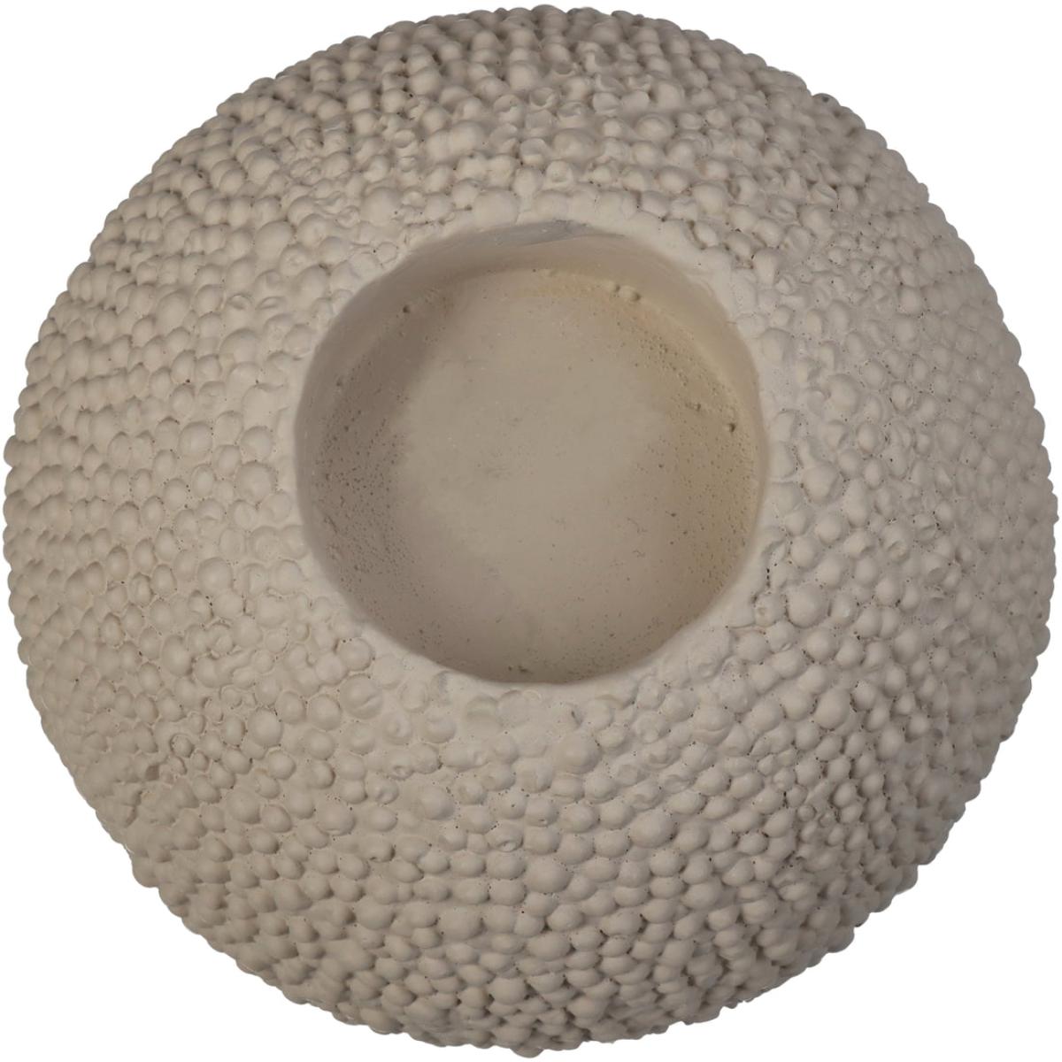 I love this candle holder for its understated texture and neutral tone, making it a versatile piece for various interior styles. Its concrete finish lends a modern, industrial feel, while the ivory hue ensures it doesn't overpower a space. It works particularly well in minimalist, Scandinavian, or contemporary schemes, where its subtle texture can add interest without clutter. For practical styling, try grouping it with other neutral accessories or natural elements like wood and linen to create an inviting, layered look. Placing it on a sideboard, cement shelf, or within a cosy nook can maximise its impact, especially when lit to cast gentle shadows and highlight its textured surface.