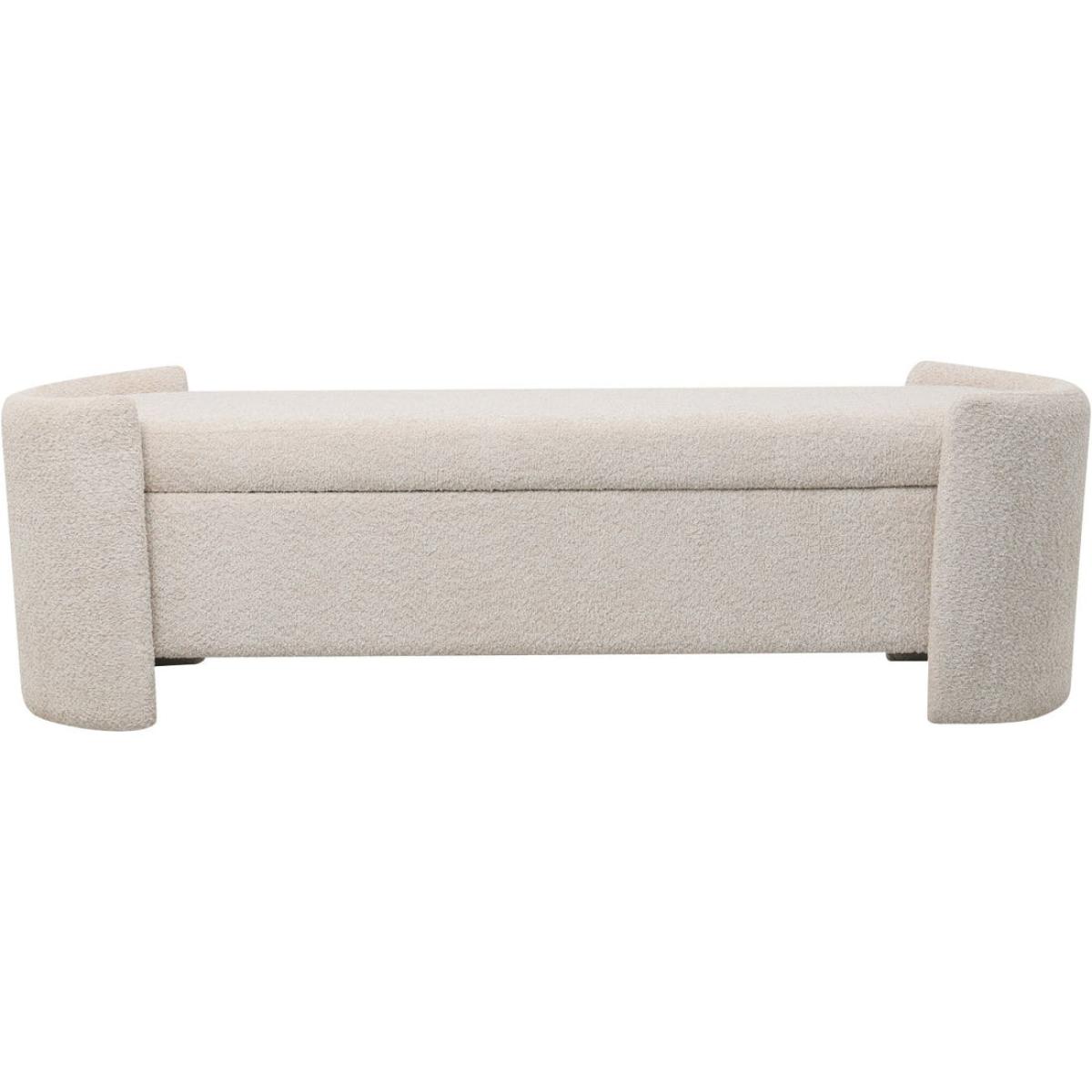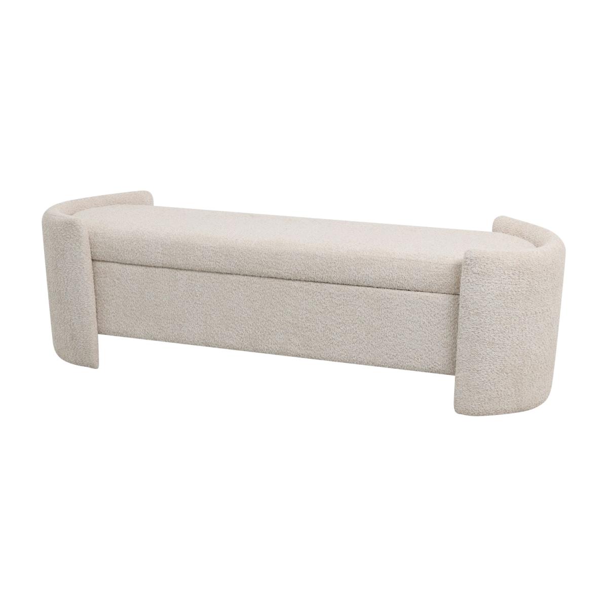 Introducing the Casa Upholstered Storage Bench in Taupe. Crafted with cozy boucle texture, this bench offers both comfort and sophistication. Its versatile design transitions seamlessly from storage solution to stylish seating, making it a practical addition to any room. Whether placed at the foot of your bed, in the entryway, or in your living space, it adds functionality and refinement. Measures W160 x D50 x H48cm. Explore the full Casa range in various colors, including a curved mini sofa, curved snug chair, stool, ottoman, and swivel chair—a comprehensive collection designed to elevate your living space with comfort and style. Dimensions: H: 48 x W: 160 x D: 50cm Materials: Velver Foam Wood Metal Care Instructions:Wipe clean with a soft, dry cloth.
