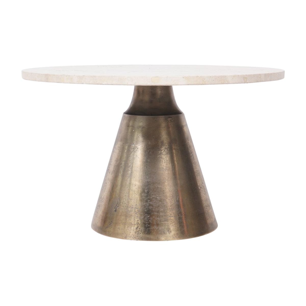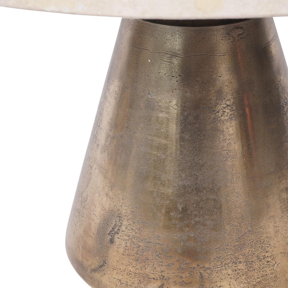 Introducing the Libra Interiors Clifton Antique Brass and Light Travertine Coffee Table – an exquisite fusion of timeless sophistication and contemporary allure. Meticulously crafted, this coffee table showcases an elegant interplay between an antique brass base and a light travertine top, creating a stunning centerpiece for any living space. The antique brass imparts a touch of vintage charm, perfectly complemented by the modern luxury of light travertine. With its seamless blend of classic and contemporary design elements, the Clifton Coffee Table by Libra Interiors stands as a versatile and striking addition that transcends mere furniture, transforming your living space into an elevated haven of style and refinement. Dimensions:Small: H:36 x W:60 x D:60cm - Large: H:40 x W:75 x D:75cm Materials: 50% Marble, 50% Aluminium Care Instructions:Wipe clean with a damp cloth, don't use harsh cleaners, etc