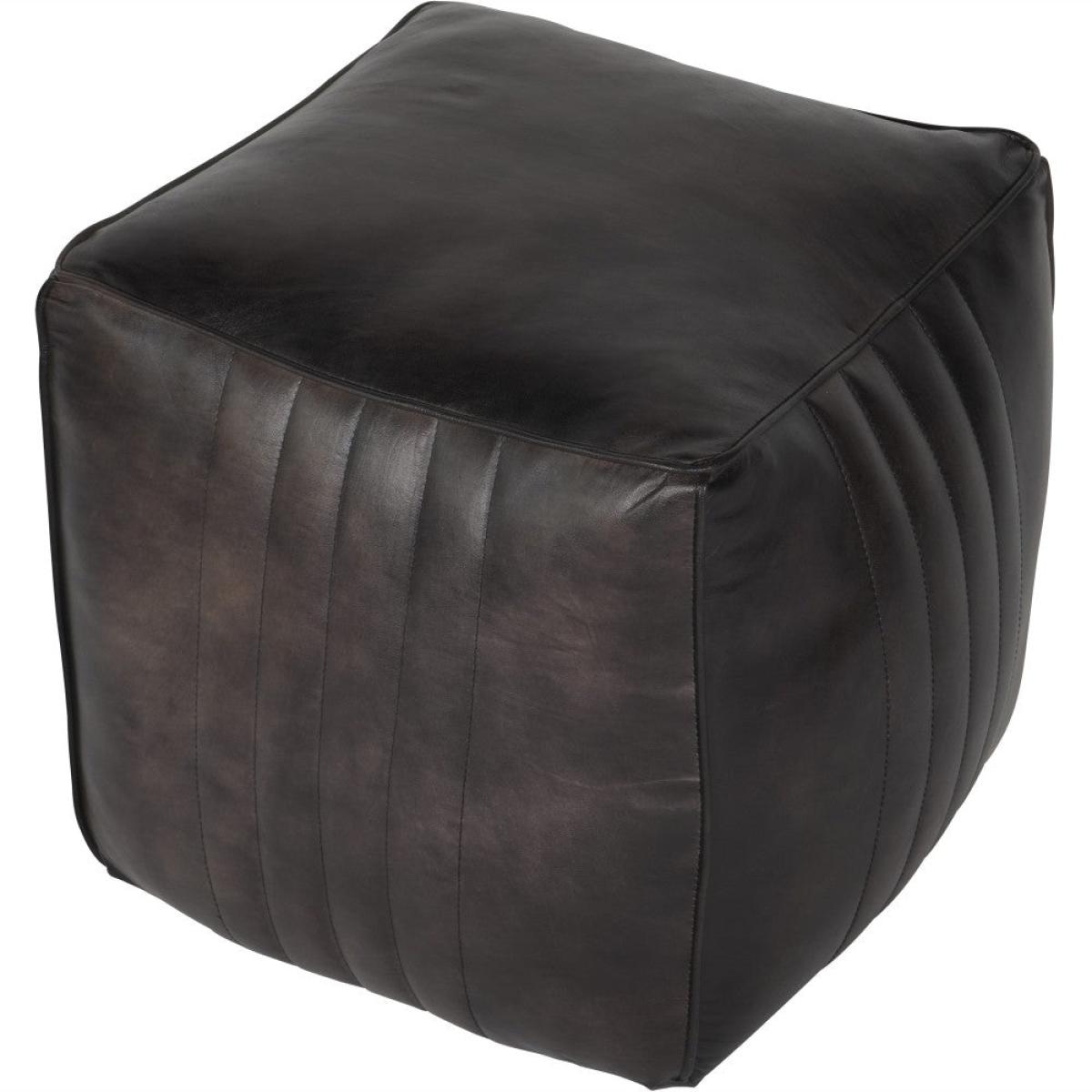 Libra Interiors Cube Leather Pouffe in Charcoal