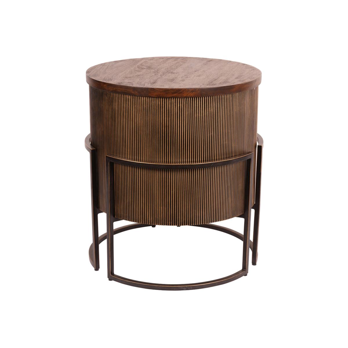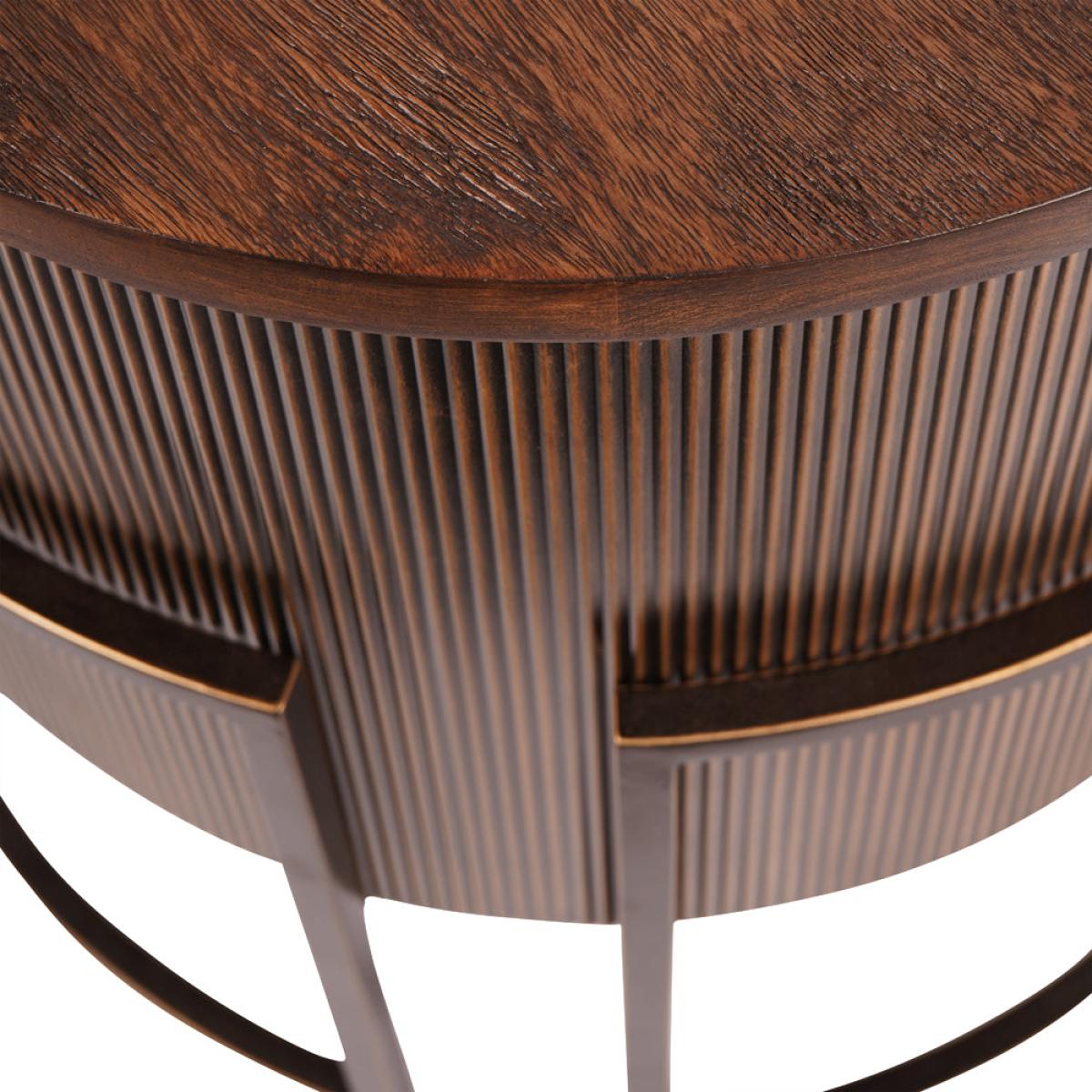 Elevate your living room decor with the Libra Interiors Hunter Corrugated Antique Gold End Table. This end table features a dark wood top and an antique gold metal base, adding warmth and elegance to any space. Whether placed next to a sofa or armchair, it provides a stylish surface for drinks, books, or decor. Crafted from high-quality materials, it is as durable as it is stylish. Elevate your home decor with the timeless beauty of the Hunter End Table from Libra Interiors.