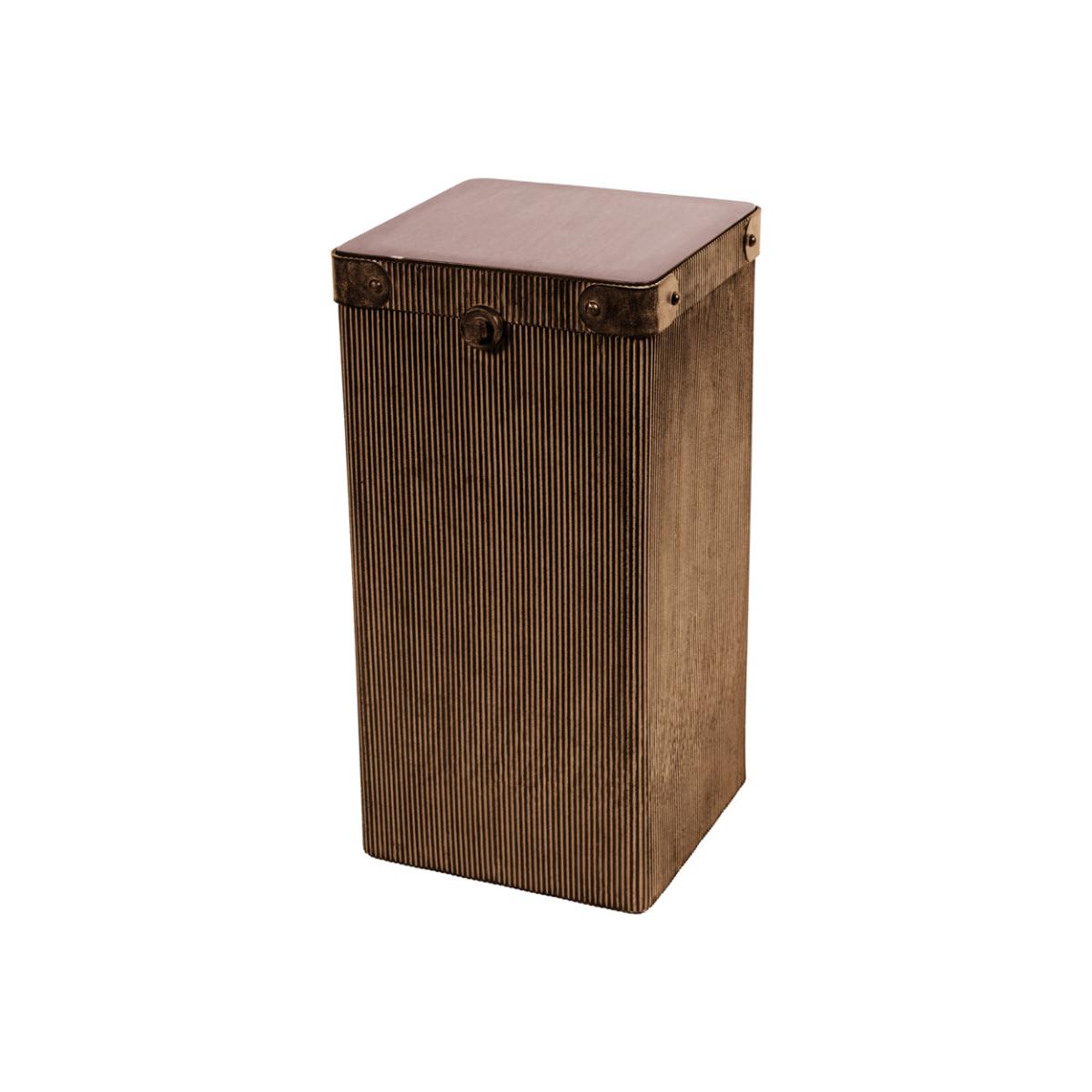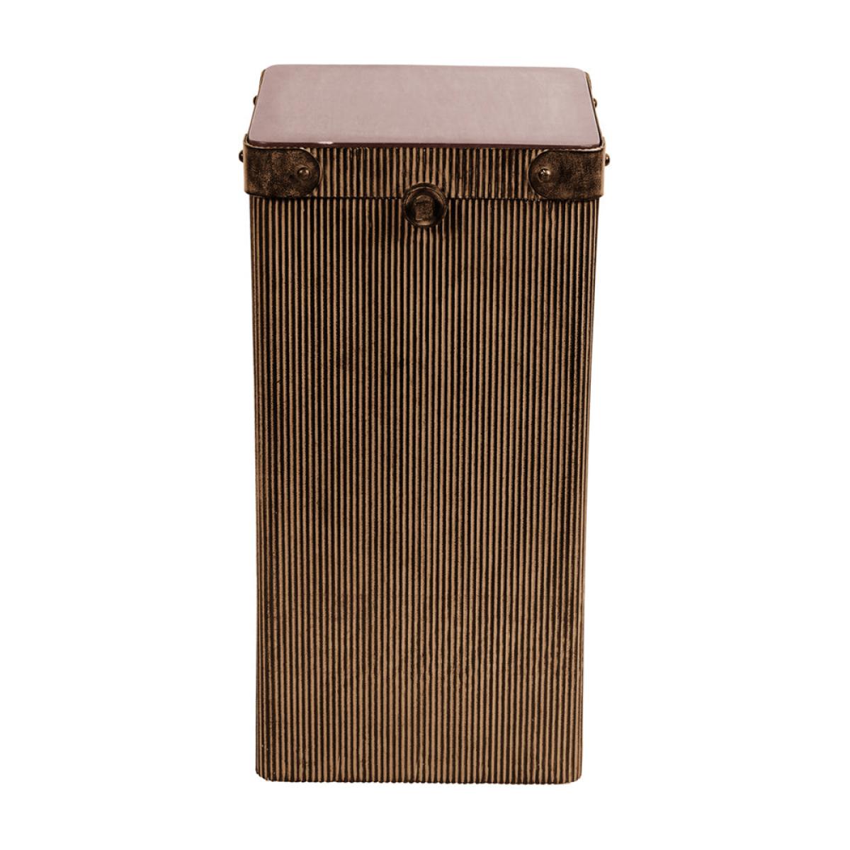 Add a touch of glamour to your living room with the Libra Interiors Hunter Corrugated Antique Gold Storage Accent Table. This accent table features a copper metal frame and a dark wood top, creating a luxurious and elegant look. Whether used as a side table or a plant stand, it adds style and functionality to any space. Crafted from high-quality materials, it is as durable as it is stylish. Elevate your home decor with the timeless beauty of the Hunter Storage Accent Table from Libra Interiors.