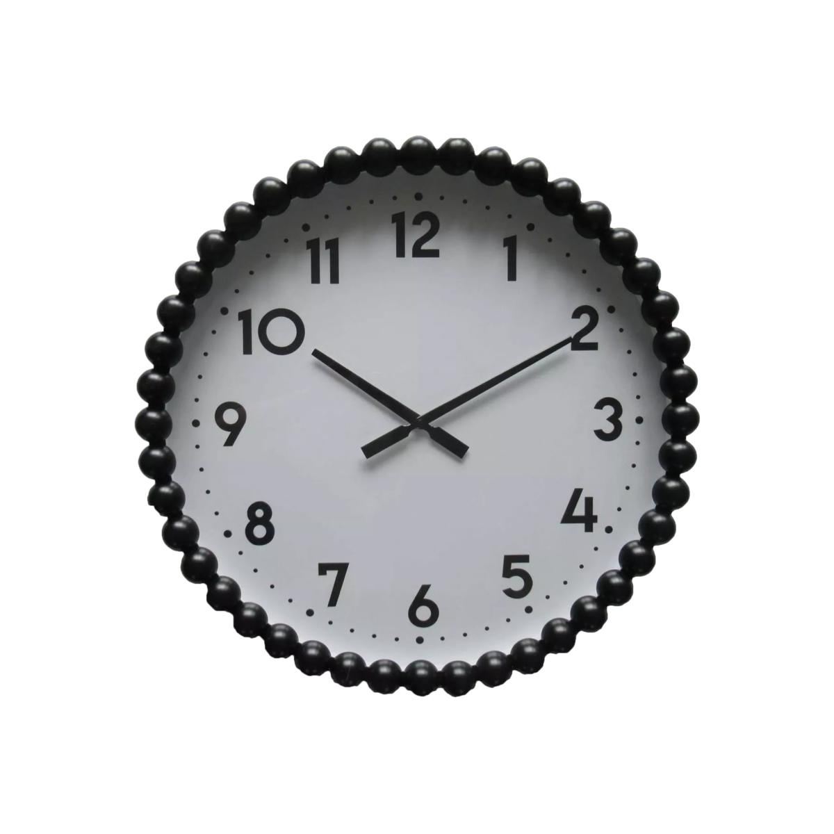 Bobbin-framed wall clock made of iron with matching classic numerals and simple clock hands. This clock produces a gentle ticking sound, adding to its nostalgic charm.