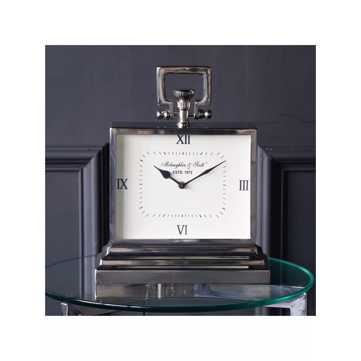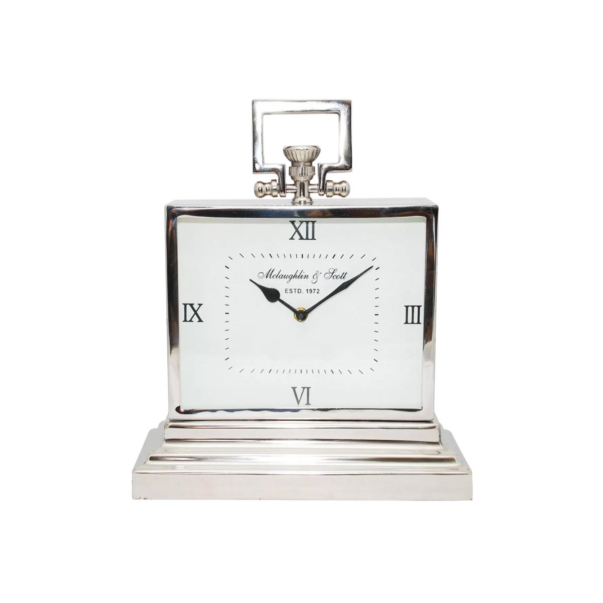 Libra Interiors Latham Small Aluminium Rectangular Mantel Clock, Nickel