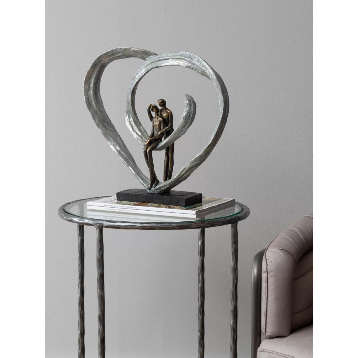 The true beauty of love comes across clearly in this artistic interpretation from Libra Interiors, a sculpture of two lovers embraced inside a large abstract semi-heart design. Cast in resin and finished in bronze with a sturdy base, this piece is a celebration of humanity's most exciting emotion.