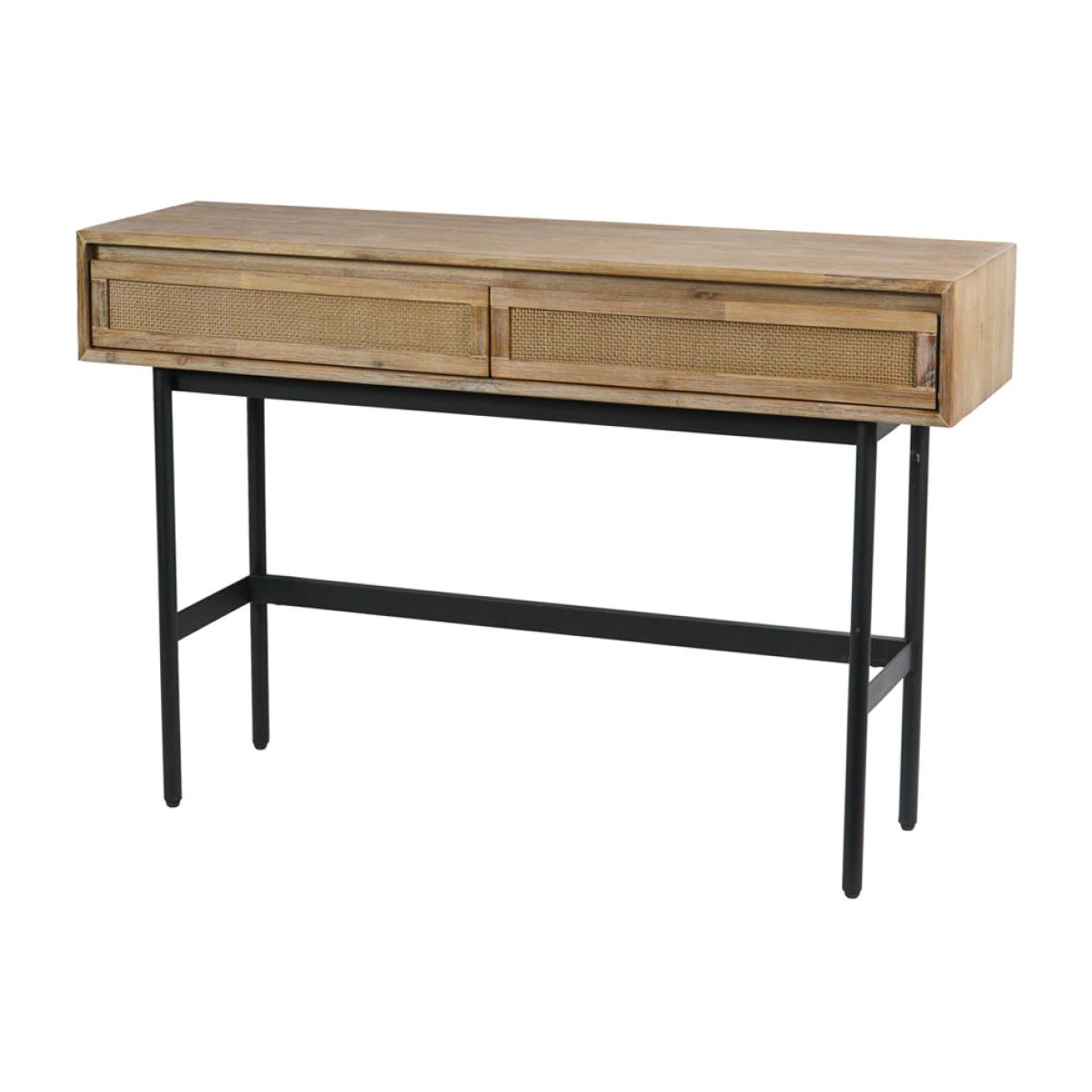 Enhance your hallway decor with the Libra Interiors Maddox 2 Drawer Console Table. This console table features a natural finish and clean lines, adding a touch of rustic charm to any space. With its two spacious drawers, it offers ample storage for keys, mail, and other hallway essentials, helping you keep your space organized and clutter-free. Crafted from solid acacia and MDF veneer, this console table is as durable as it is stylish. Whether placed in the entryway or living room, the Maddox Console Table is sure to make a statement.