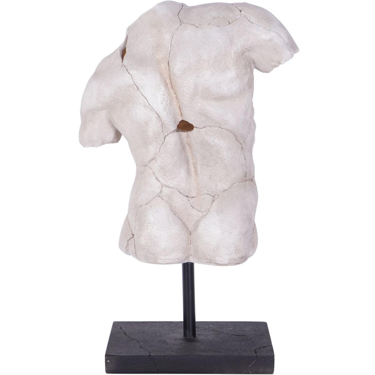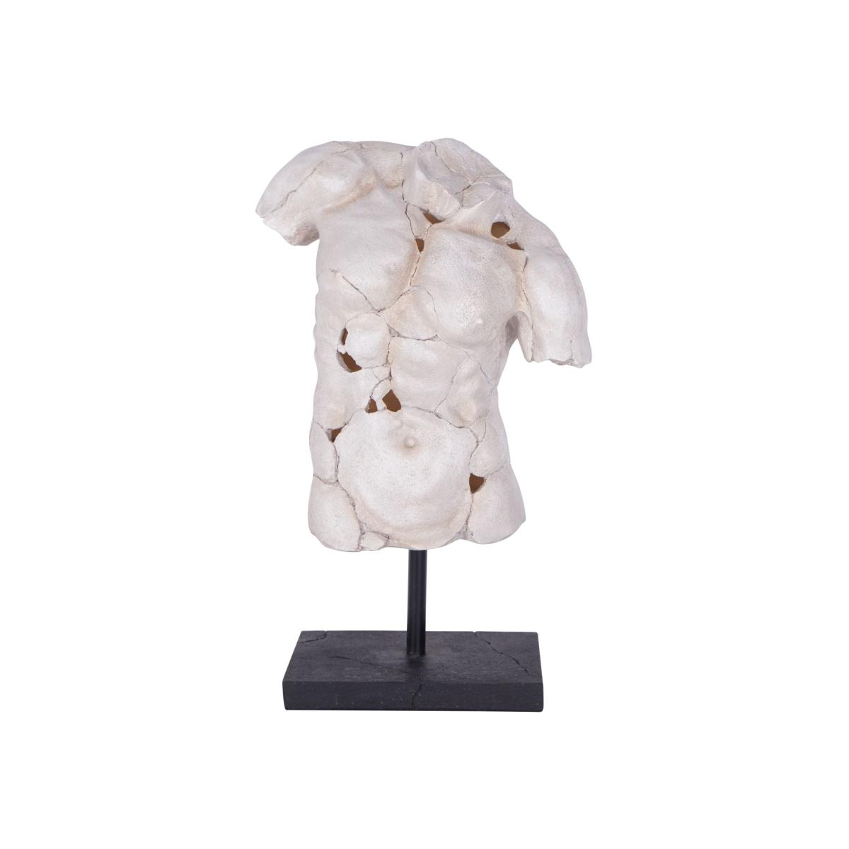 Introducing our Male Torso Sculpture, a striking addition that elevates the aesthetic of your home or office space. Crafted from high-quality polyresin, this sculpture boasts a modern and captivating design sure to leave a lasting impression. The intricately detailed male torso symbolizes resilience and strength, celebrating the human form. Display this unique piece on a side table, coffee table, bookshelf, mantle, or anywhere else to showcase your discerning taste and creative flair. Its slightly angled body and subtle cracks evoke mystery and intrigue, inviting contemplation. Measures W38 x D20.5 x H62cm. Dimensions: H: 62 x W: 38.8 x D: 20.5cm Materials: Resin Care Instructions:Wipe clean with a soft, dry cloth.