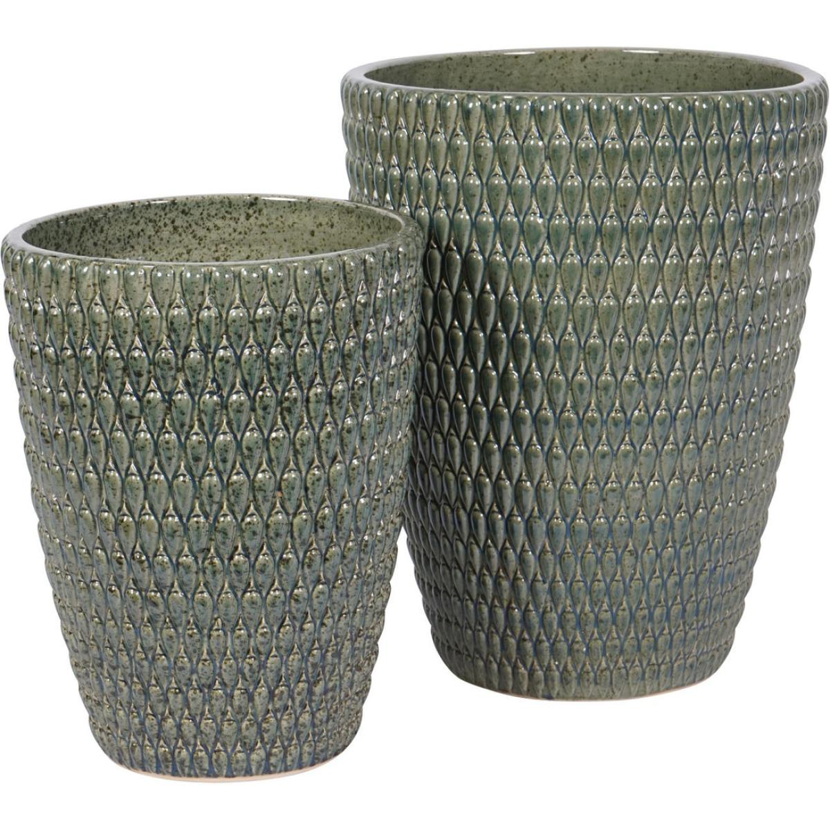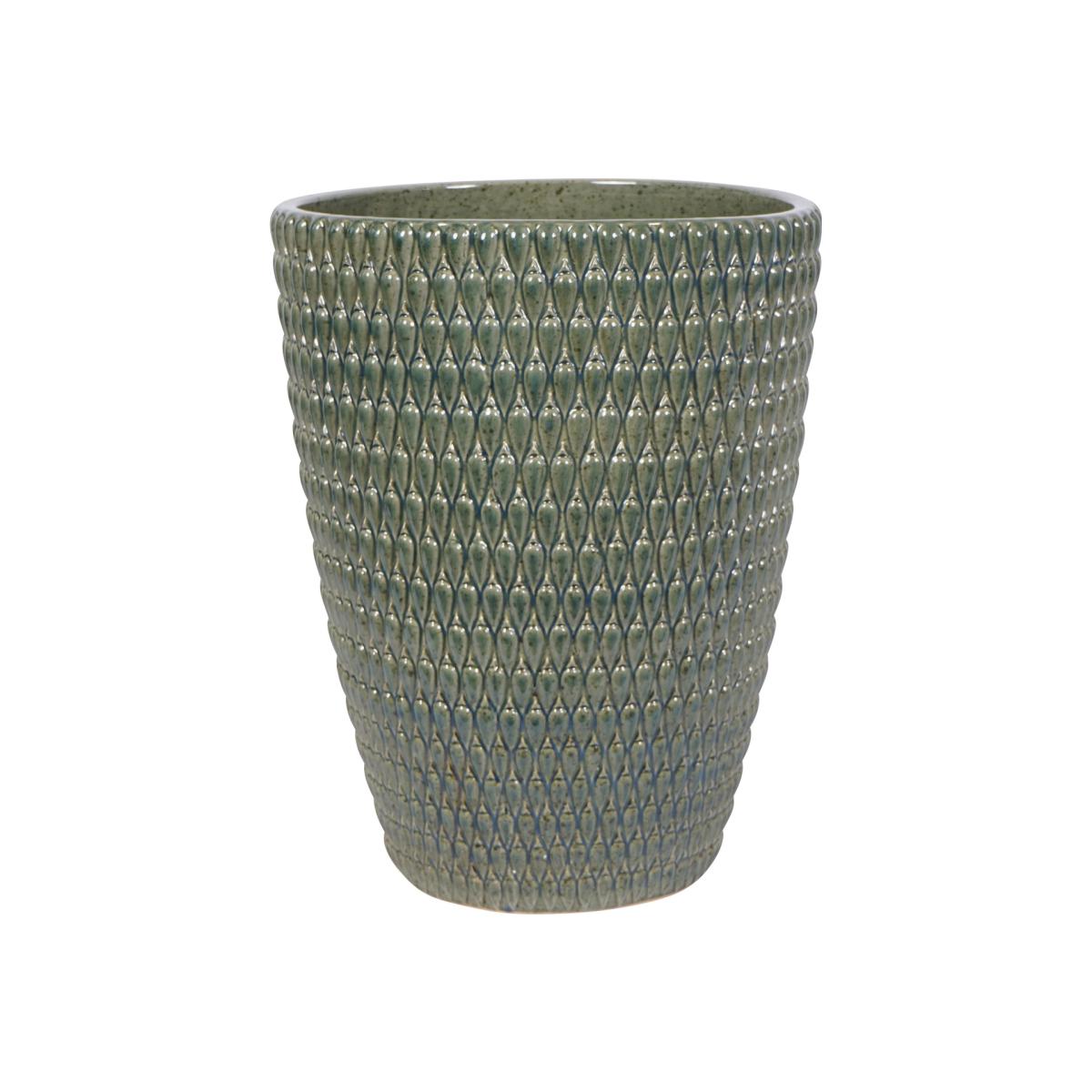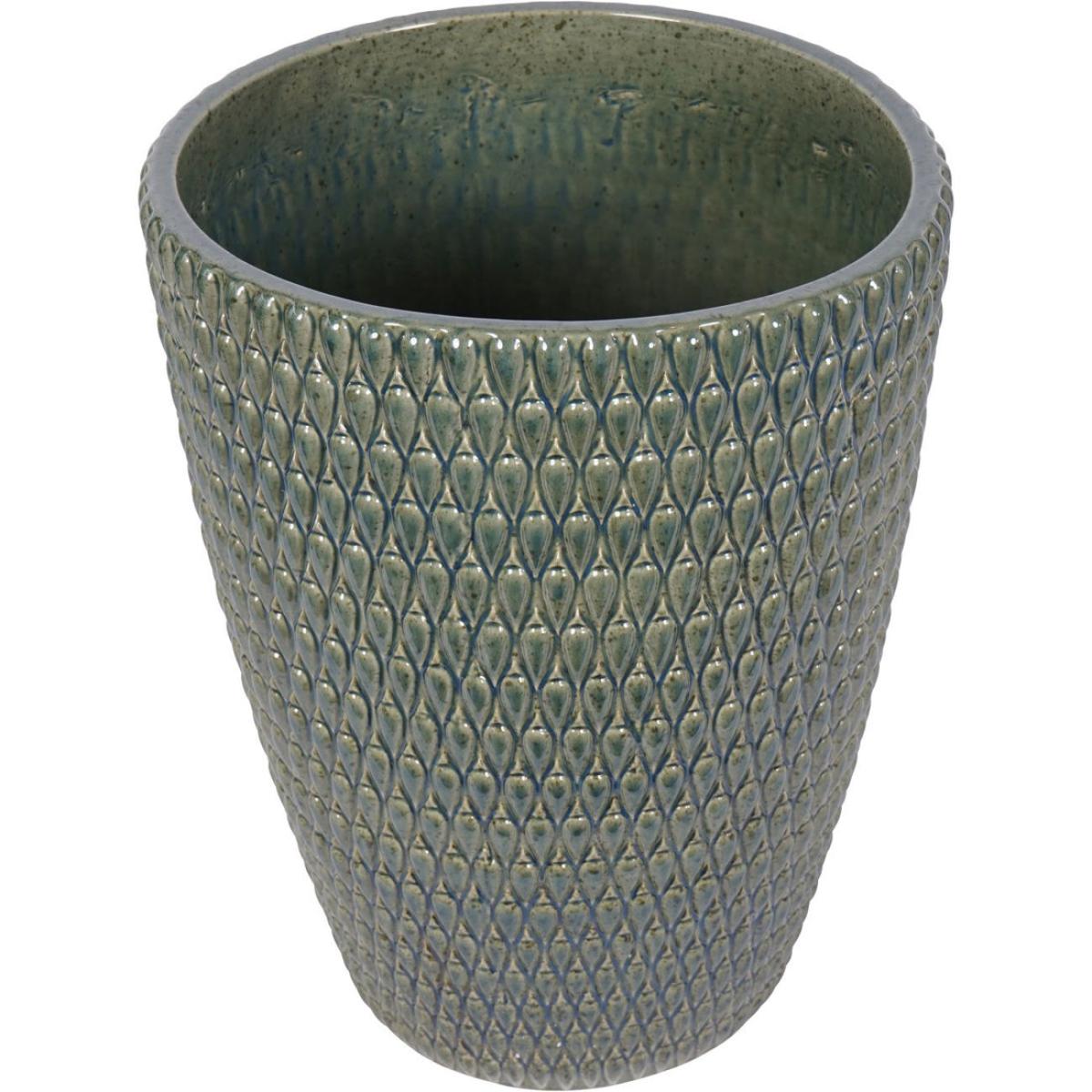 Introducing our luxurious Mediterranean Reactive Glaze Ceramic Planter XL in Green. Transform your indoor sanctuary with this captivating piece that exudes elegance and charm. Featuring a reactive glaze, it reflects soothing greens, earthy tones, and subtle golden hues. Designed with an exquisite raised teardrop surface, each curve embodies refined elegance. Ideal for showcasing botanical treasures, adding serenity to any interior. Indoor use only. Explore our full Mediterranean collection, including five additional Planters, three Ginger Jars, and three decorative Bowls. Dimensions: H: 54 x W: 41 x D: 41cm Materials: Ceramic Care Instructions:Wipe clean with a soft, dry cloth.