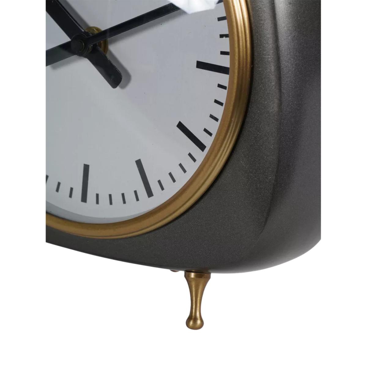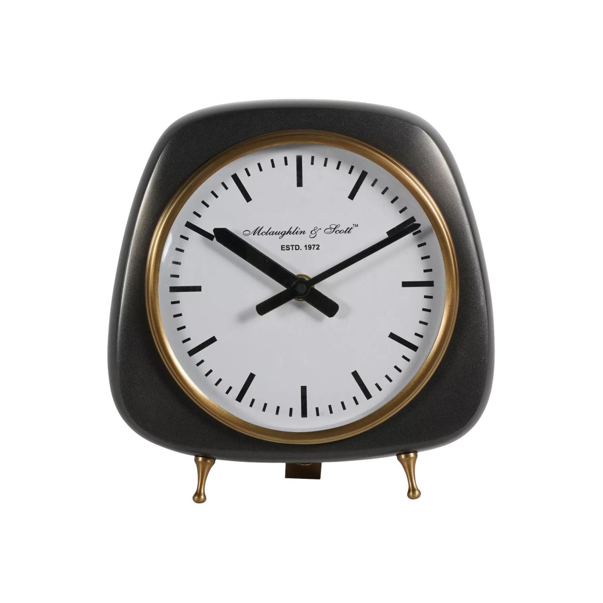 Stylish, retro mantel clock featuring a metal case with brass highlights and a smart cream face. The quartz mechanism produces a gentle ticking sound, adding to its nostalgic charm.