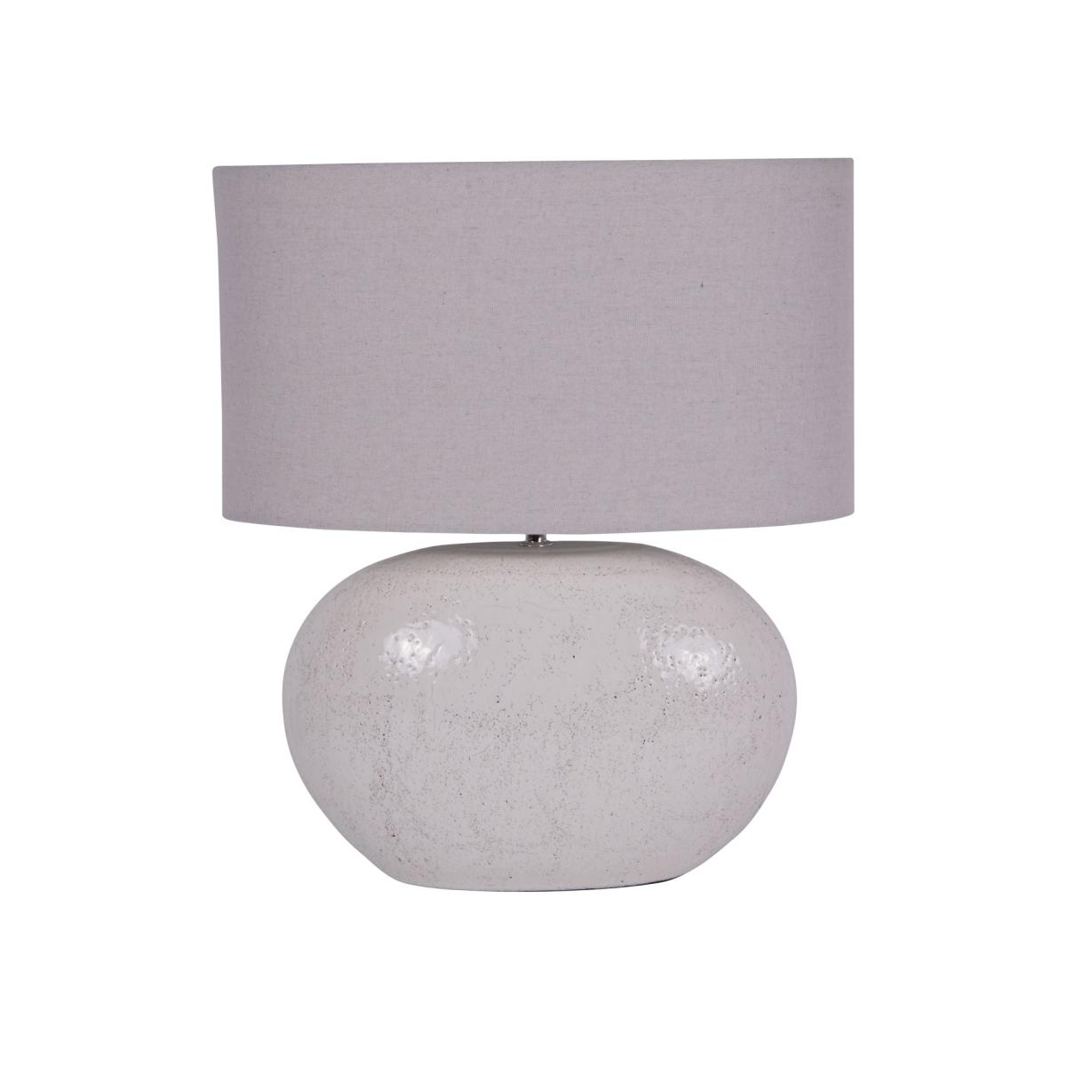 Introducing our Oviedo Terracotta Table Lamp—a captivating addition to your home decor. Its base, resembling an oversized oval pebble, features intricate pitting and veining within a glazed white finish, radiating understated sophistication. With its versatile neutral tone, the Oviedo Table Lamp effortlessly complements any decor scheme. Its subtle yet distinctive design adds a touch of unique charm to any space, perfect for those who value both style and substance. Sold with Shade. Base dimensions: W41 x D14 x H32cm. Cable length: 130cm. Switch type: Standard Toggle Switch. Dimensions: H: 53 x W: 44 x D: 21.5cm Materials: Ceramic Care Instructions:Wipe clean with a soft, dry cloth.