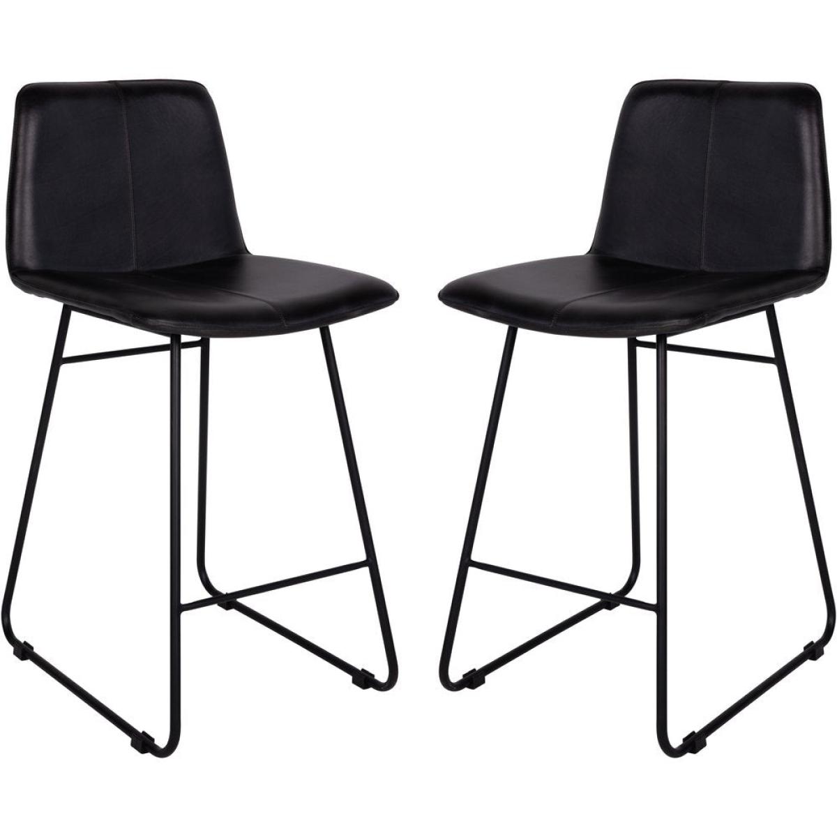 Libra Interiors Pair of Robinson Leather Bar Stools in Charcoal