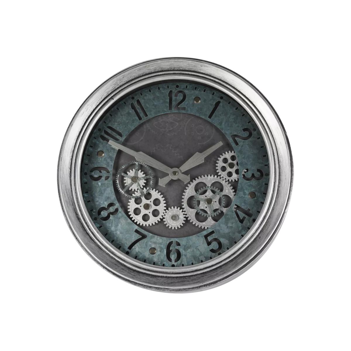Libra Interiors Palladium Moving Cogs Dial Wall Clock, 33.5cm, Antique Silver