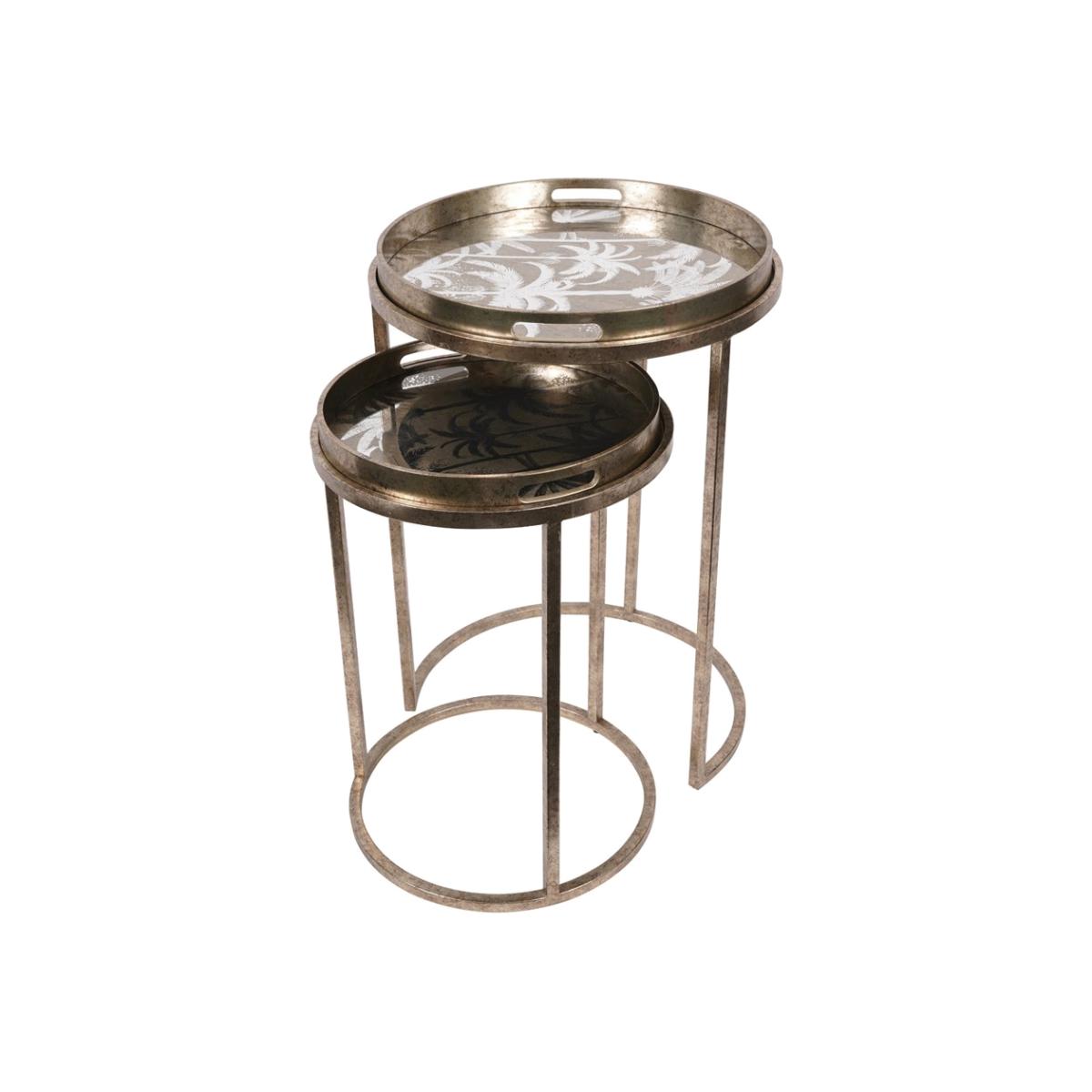 Add a touch of glamour to your living room with the Libra Interiors Palm Tree Set of 2 Side Tray Tables. These side tray tables feature a gold-finished metal frame with mirrored tops, creating a luxurious and exotic look. Whether used as side tables or serving trays, they add functionality and style to any space. Crafted from high-quality materials, they are both durable and stylish. Whether placed next to a sofa or armchair, the Palm Tree Side Tray Tables are sure to impress your guests. Elevate your home decor with the chic and glamorous design of these side tables from Libra Interiors.