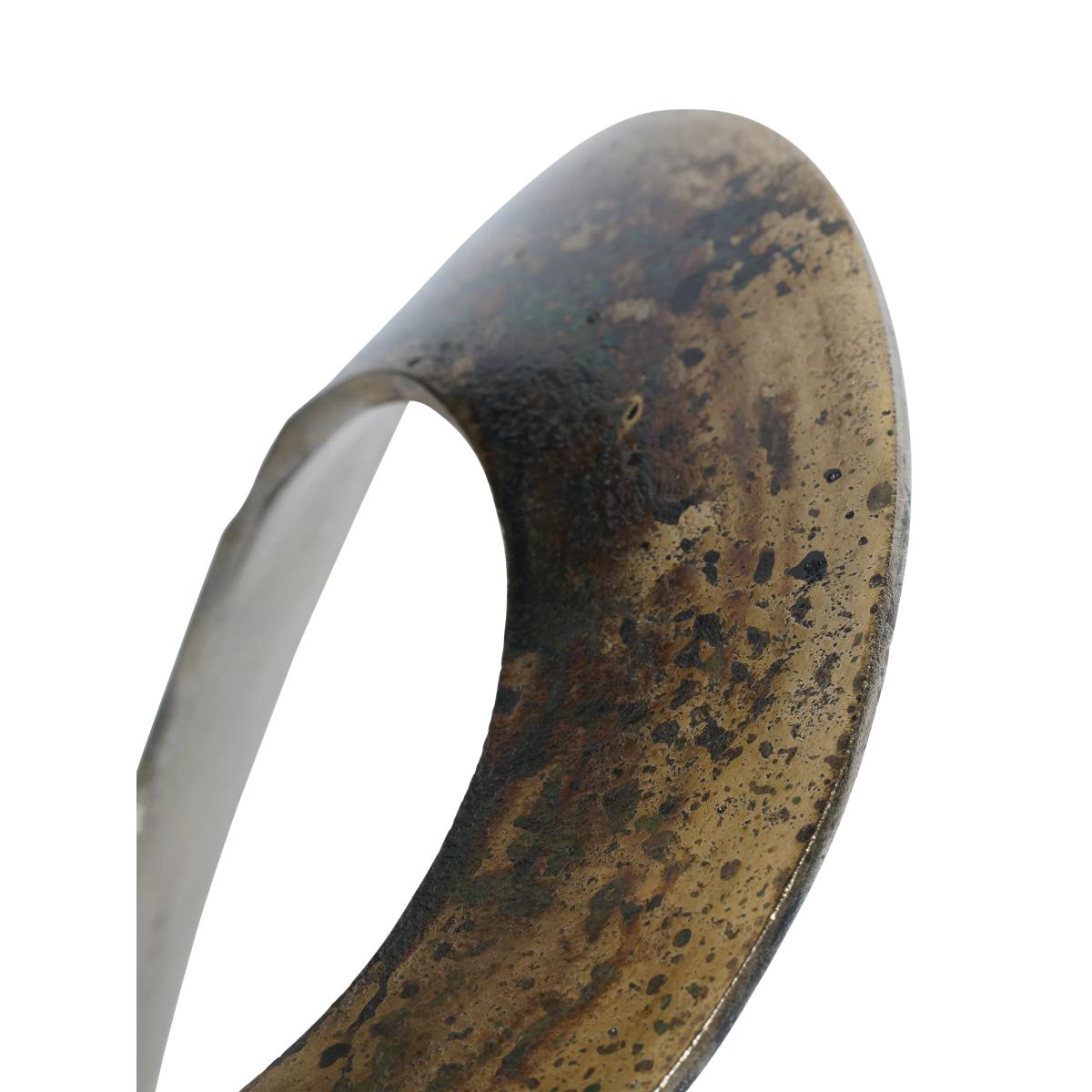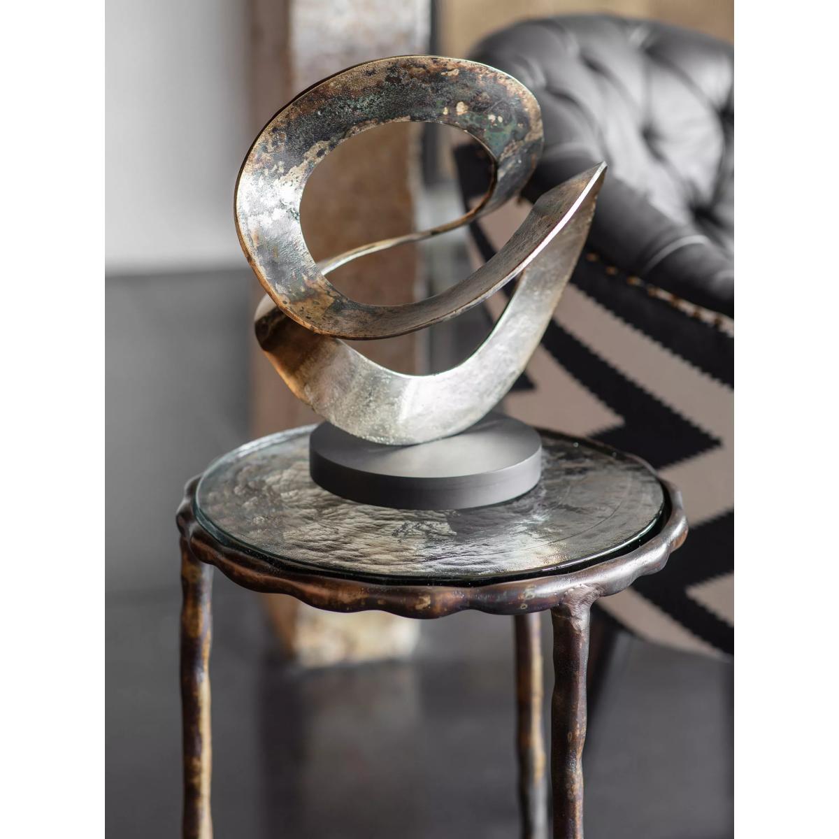 I love this piece for its modern organic form and rich antique bronze finish which adds warmth and texture to a variety of interiors. It works well as a statement on a side or console table, or can be paired with minimalist décor to lift a neutral space. The sculpture’s fluid shape makes it particularly suitable for contemporary or industrial settings, but it can also complement eclectic or vintage styles. Practical styling tips include grouping it with other metallic accents or placing it on a softly coloured surface to create contrast. It’s a versatile addition that adds visual interest without overwhelming the room.