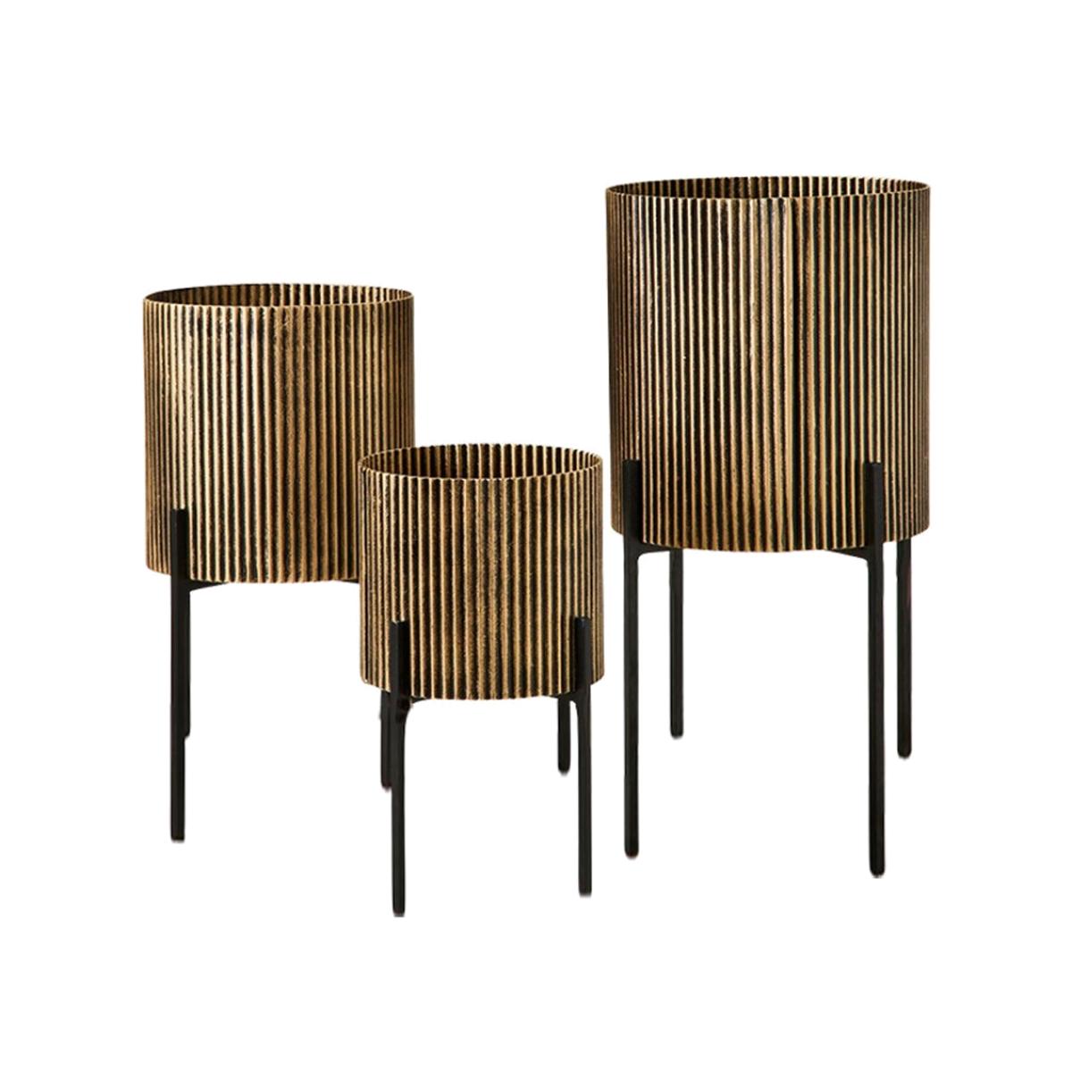 Add a touch of glamour to your indoor garden with the Libra Interiors Set of 3 Corrugated Floor Planters. These floor planters feature a gold and brass finish, creating a luxurious and elegant look. Whether placed in the living room, hallway, or bedroom, they add style and sophistication to any space. Crafted from high-quality iron, they are both durable and stylish. Perfect for housing your favorite plants or flowers, the Corrugated Floor Planters are sure to elevate your home decor. Add a touch of glamour to your indoor oasis with these stunning planters from Libra Interiors.