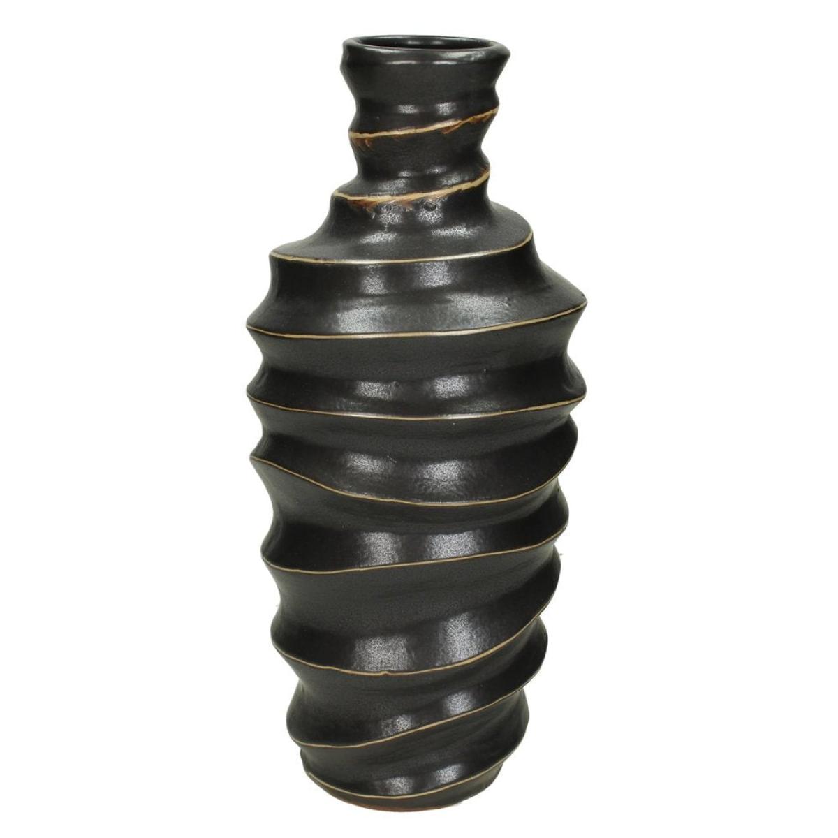 This exquisitely crafted Libra Interiors stoneware vase exudes an effortless elegance, complete with a timeless black finish that will add a touch of sophistication to any room. Its substantial size will make a striking statement, yet its refined shape ensures it won't overpower its surroundings. Crafted with an eye for style and quality, this vase is sure to add a luxurious touch to any interior.