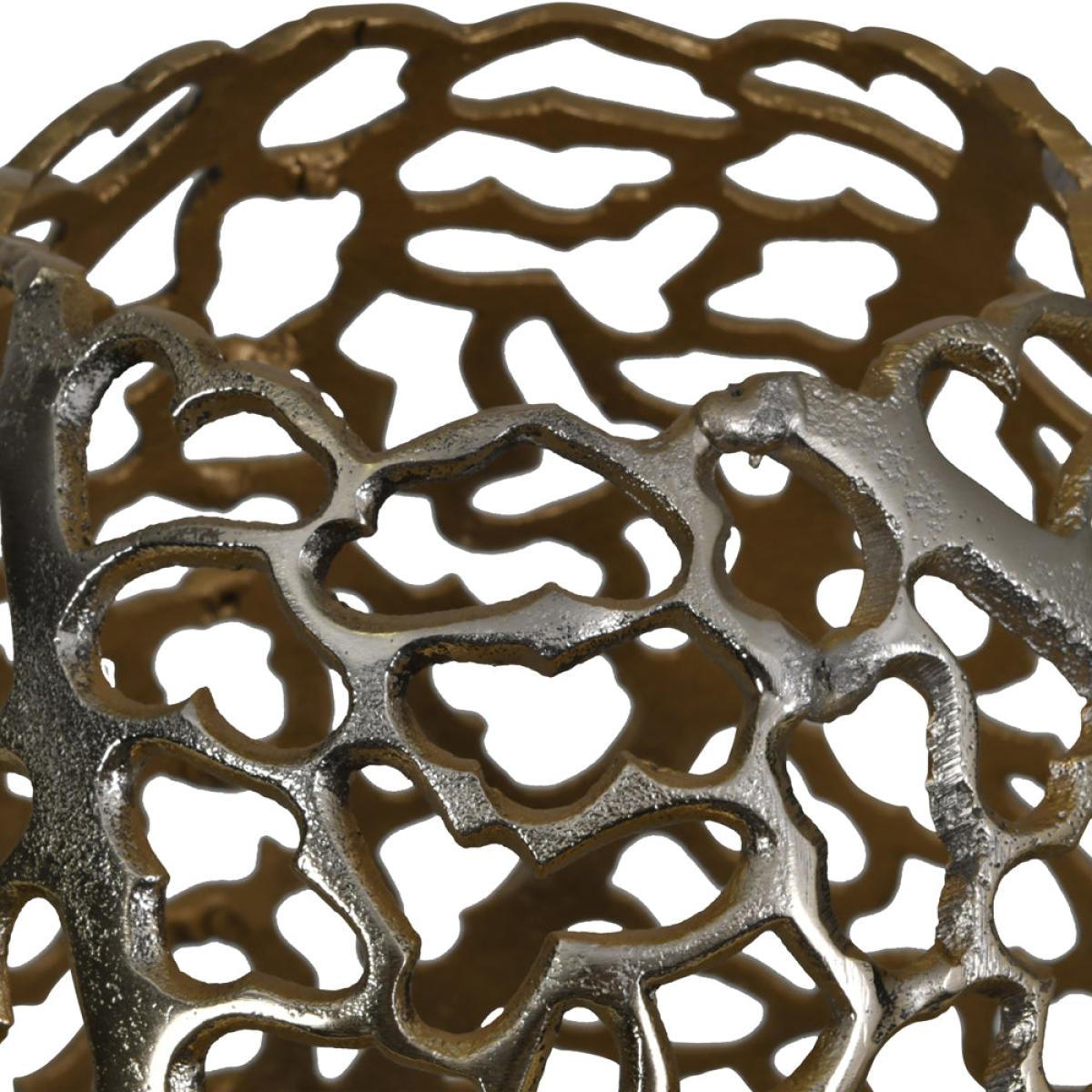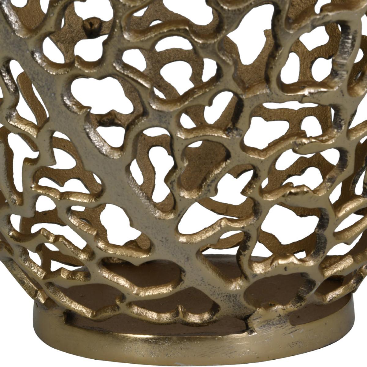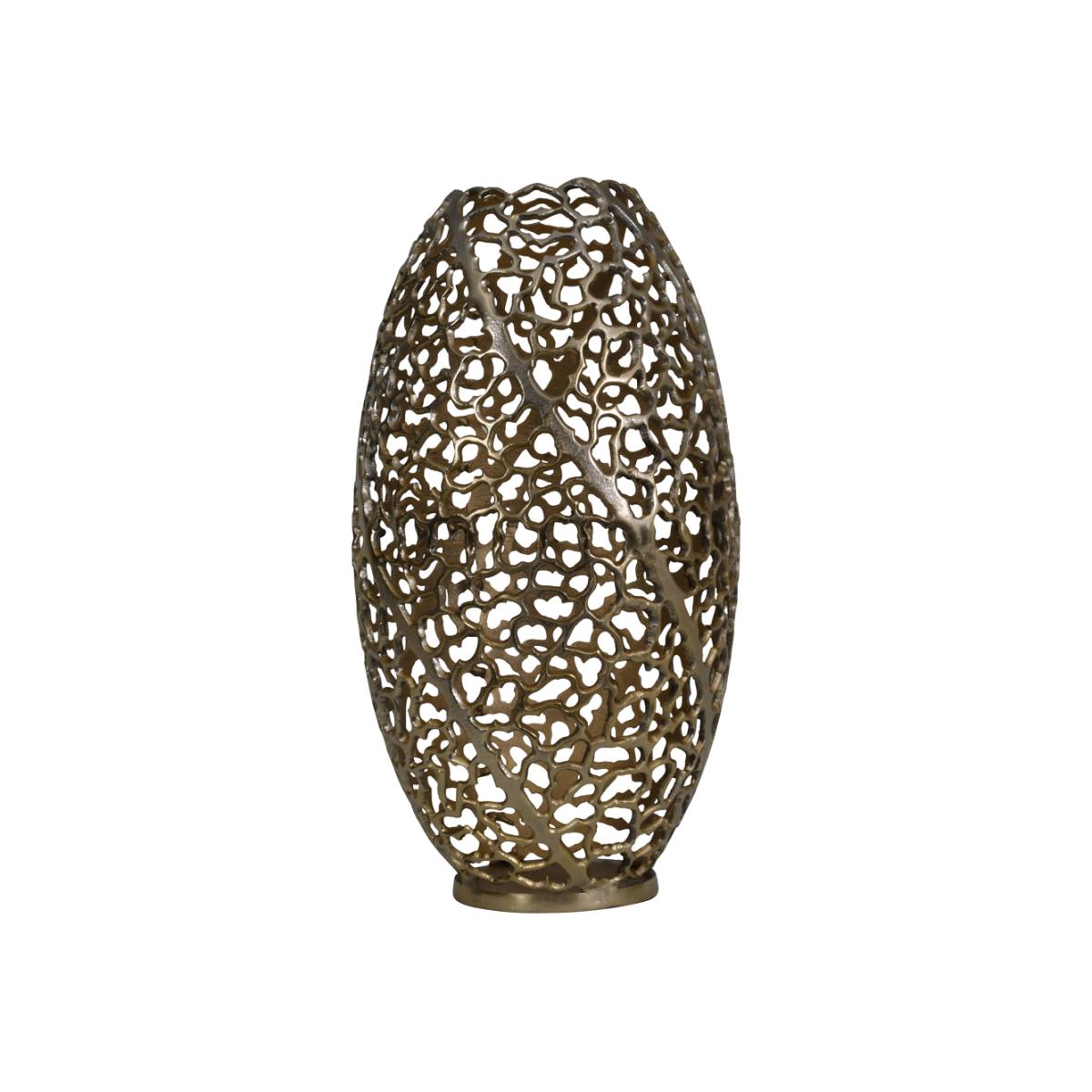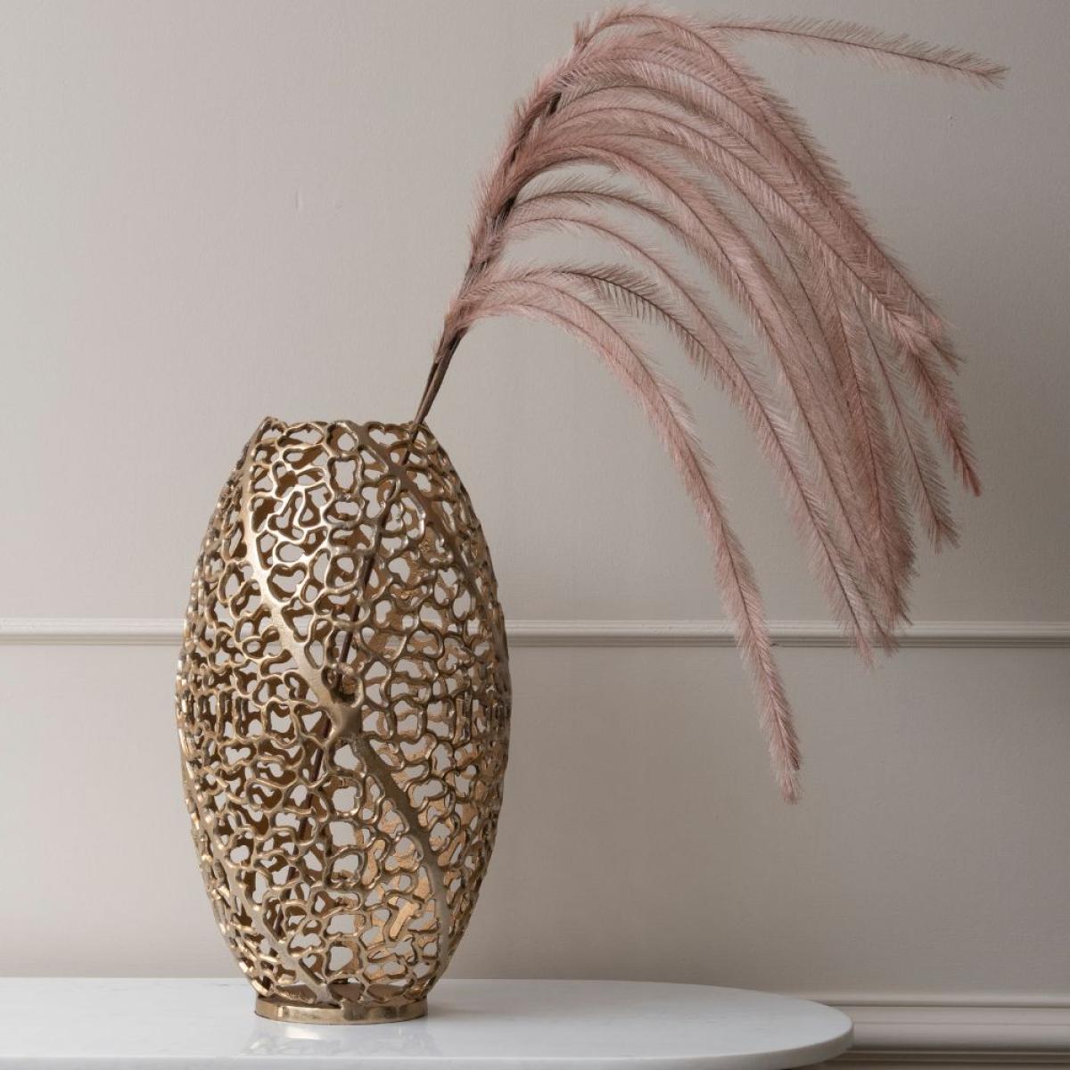 The ubiquitous vase gets a thoroughly modern makeover with this stunning piece that we at Libra are excited to now bring to you. More than just a vase, this thoughtfully crafted artwork combines the beauty of an antique-gold patina with an original delicate design inspired by the natural coral of the Great Barrier Reef in Australia. Formed from solid aluminium and measuring at 48cm high with a maximum diameter of 26cm, this substantial item will enhance your home as an ornamental piece or as the perfect partner to a display of dried flower heads and grasses curated from your garden. Dimensions: W: 26 x D: 26 x H: 48 cm Materials: 100% Aluminium Assembly Required: No Care Instructions:Dust with a clean, lint free cloth