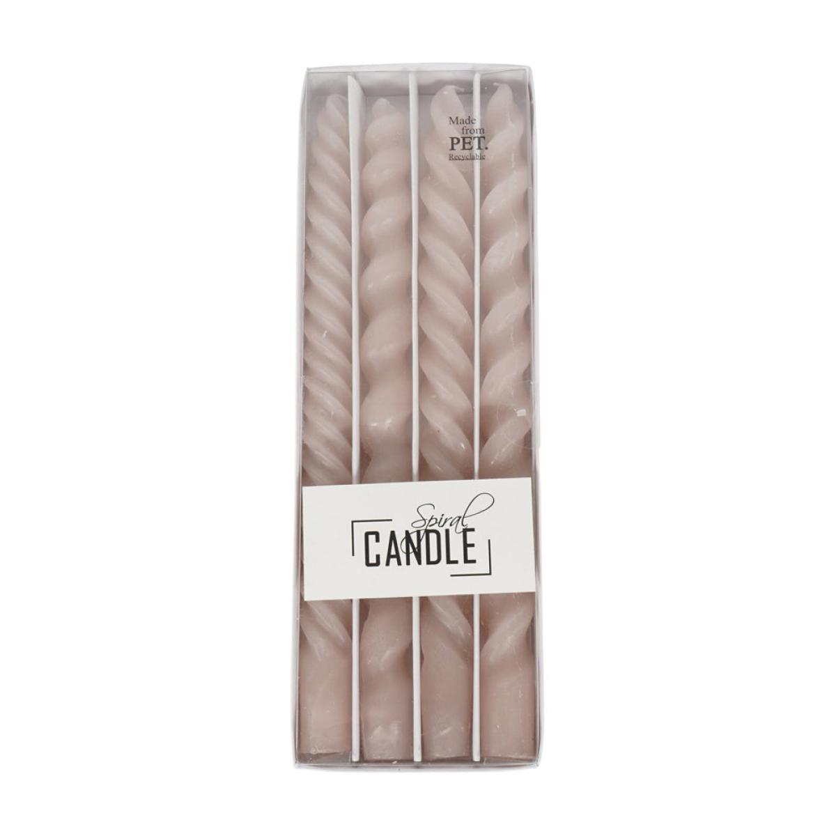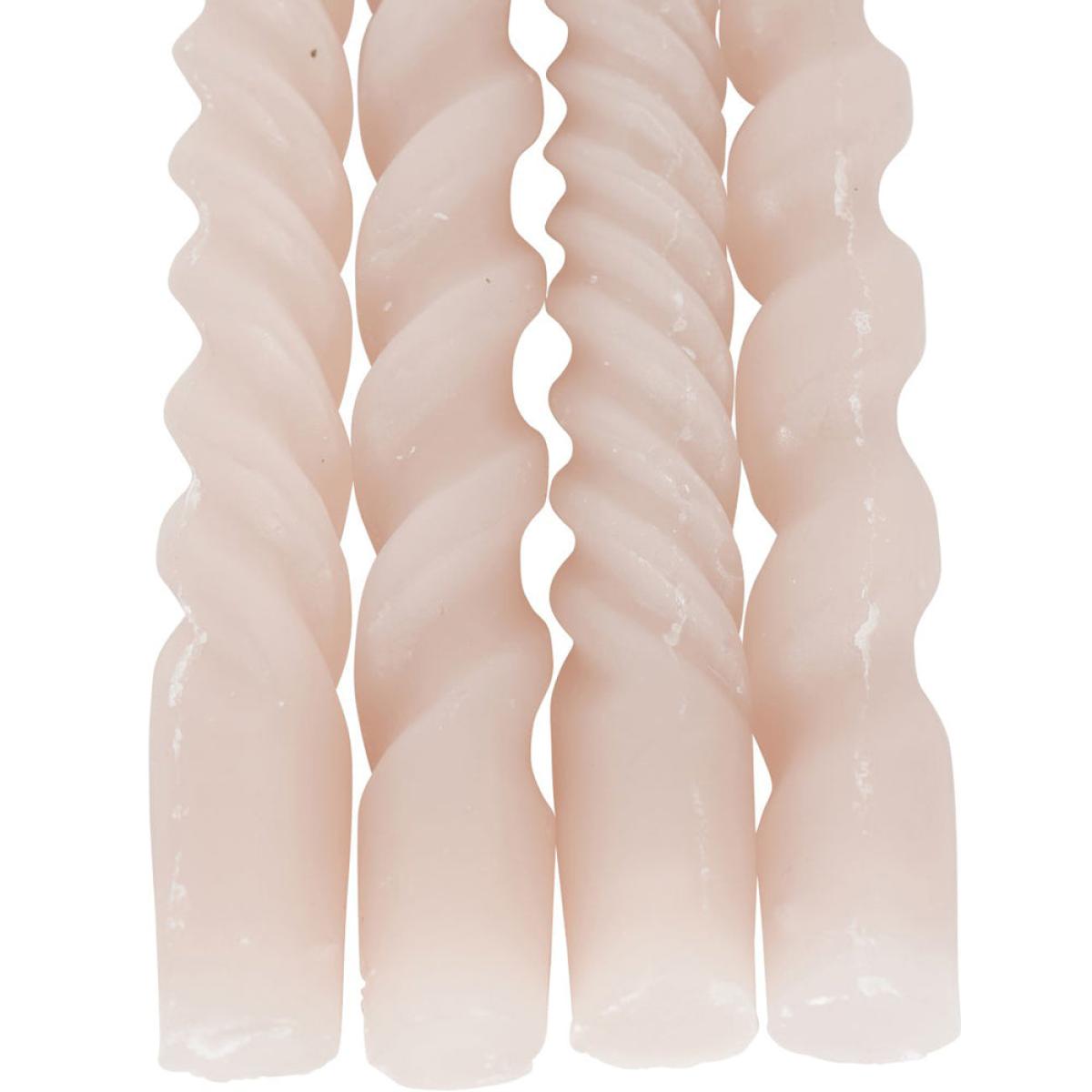 Set the mood with these twisted taper candles, made in a soft pink wax in different types of twists, these candles burn cleanly and arrive as a set of 4 in a gift box. Dimensions: H: 31 x W: 2 x D: 2 cm Materials: 100% wax Assembly Required: No Care Instructions:Dust with a dry, soft cloth