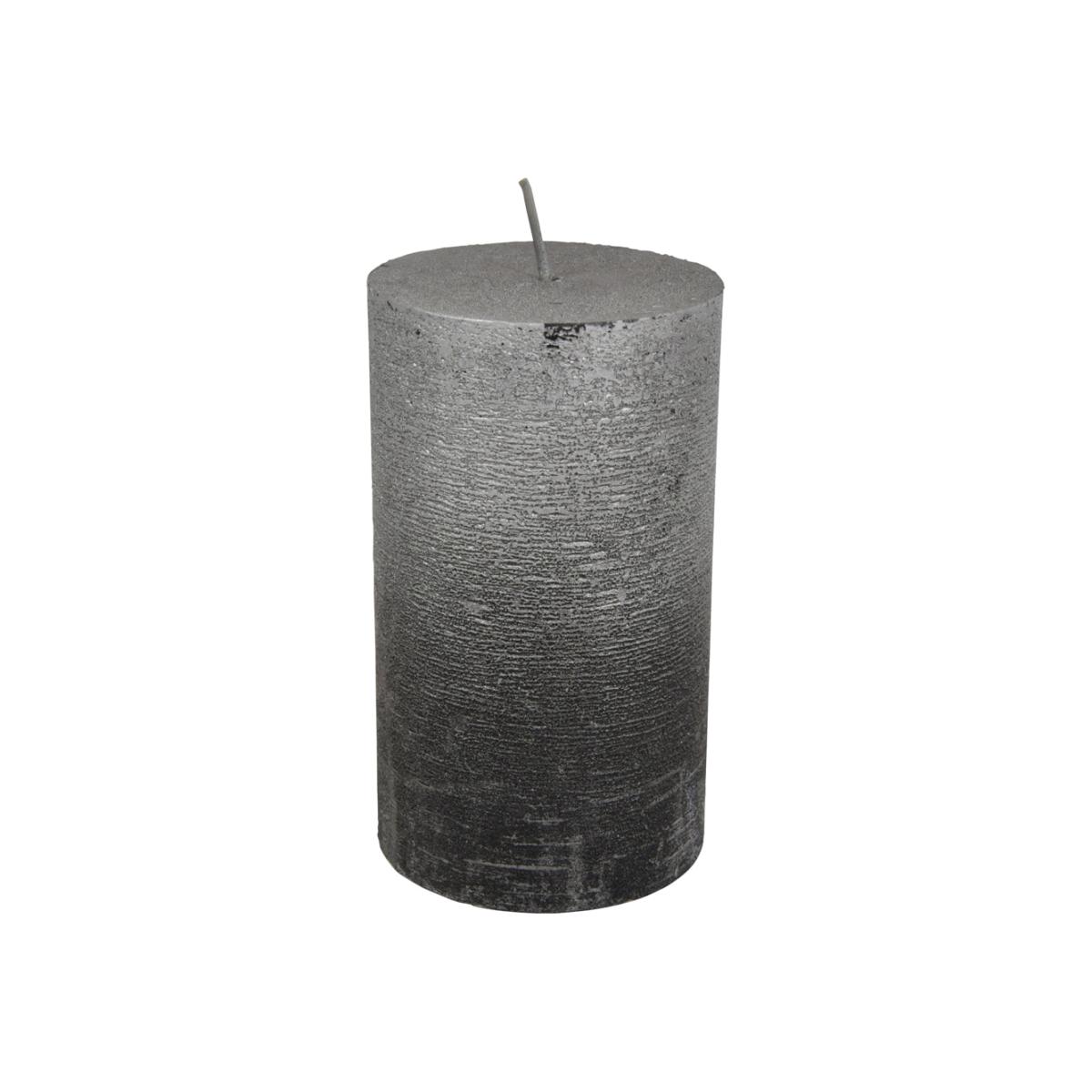 This Libra Black and Silver Ombre Pillar Candle will be a striking and practical addition to any home. Use it to illuminate bold decor or add interest to dark corners. Enjoy its shimmering beauty whether it’s taking centre stage on a glossy dining table or sideboard, transforming a bare shelf, or providing the finishing touch to a candle holder display.##Use it as a standalone piece or as part of a set and allow its bold tones to contrast with more neutral interiors or ground brighter shades. Illuminated or not, the innate beauty of this 7cm by 12cm piece is sure to shine through. Dimensions: W: 7 x D: 12 x H: 7 cm Materials: Metallic Ombre Assembly Required: No Care Instructions:Dust with a clean, lint free cloth