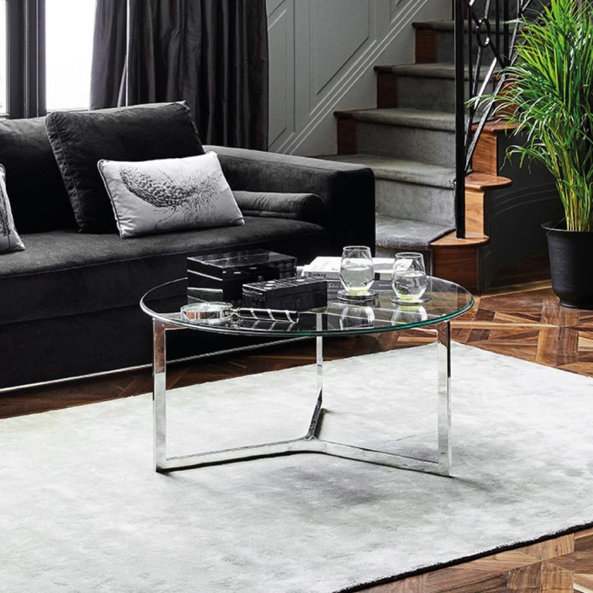 Combining a sleek blend of fashionably minimalist steel and glass, the Libra Linton coffee table will be a sophisticated addition to your home. This meticulously constructed table features a beautifully designed three-part frame that divides the support for the top glass surface into three parts. The metal frame not only has an inspiring design but also a glossy modern finish that will make a lasting impact in any modern setting. A fine example of timeless contemporary elegance, this superbly crafted Libra Linton coffee table is made from the finest materials and will look right at home in an airy and light-filled space. Dimensions: W:85 x 85 x 40 cm Weight: 20 kgTexture/. Finish: Polished Assembly Required:yes
