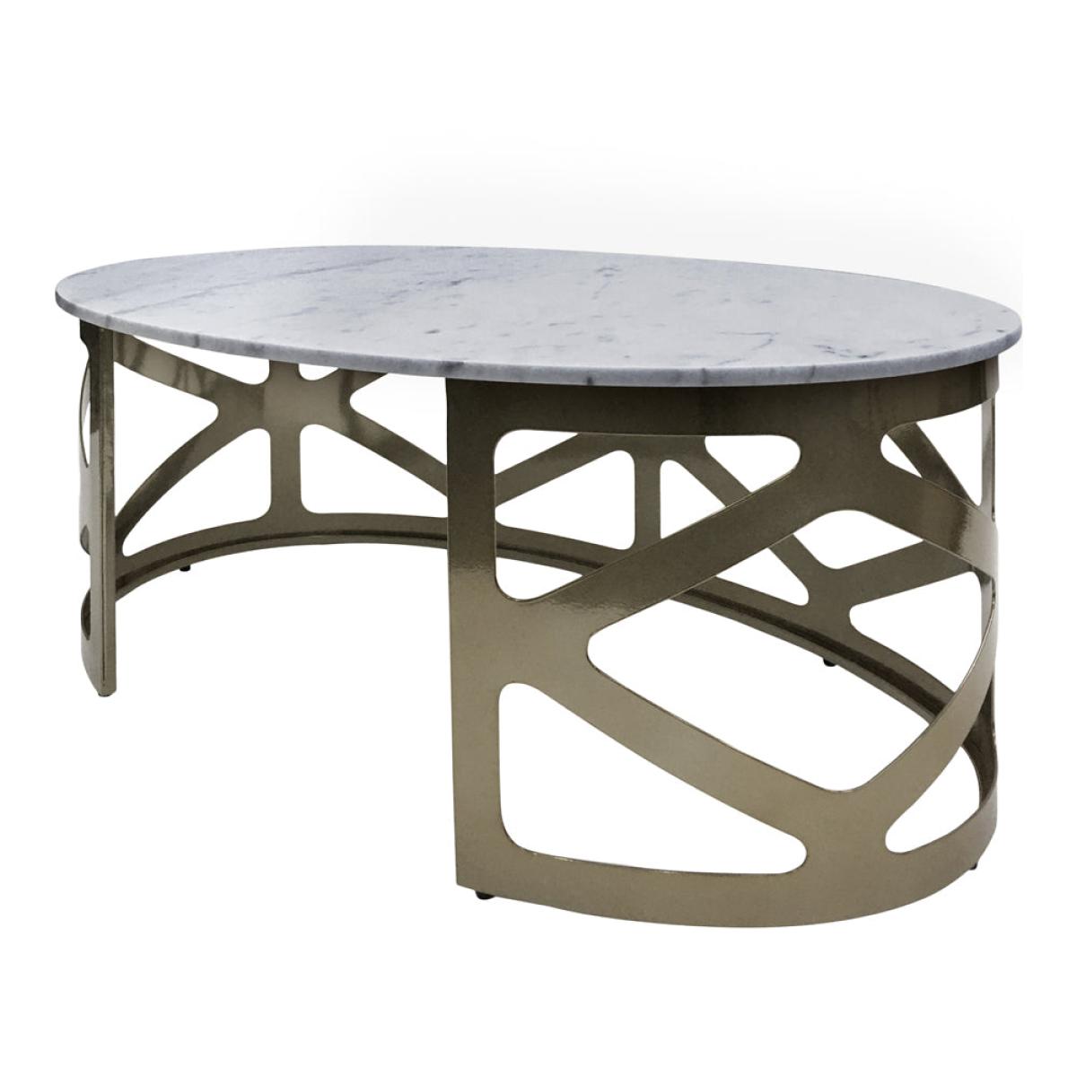 With its grey marble and black nickel finish, this coffee table with art-deco styling would not have been out of place in the home of Mr Gatsby himself! At 40.5cm high, it's the perfect height for your favourite beverage and glossy coffee table brochures and will be a statement piece in any living area. The smoky grey marble top denotes luxury, with the metallic black nickel adding flourishes that call to mind the 1920s and '30s. This metropolitan coffee table conjures the image of opulence while being eminently practical, with storage space underneath the table itself. It's the perfect conversation starter while sharing coffee. Dimensions: W: 110.5 x D: 57.5 x H: 40.5 cm Materials: Iron, Marble Assembly Required: No Care Instructions: Dust with a clean, lint free cloth