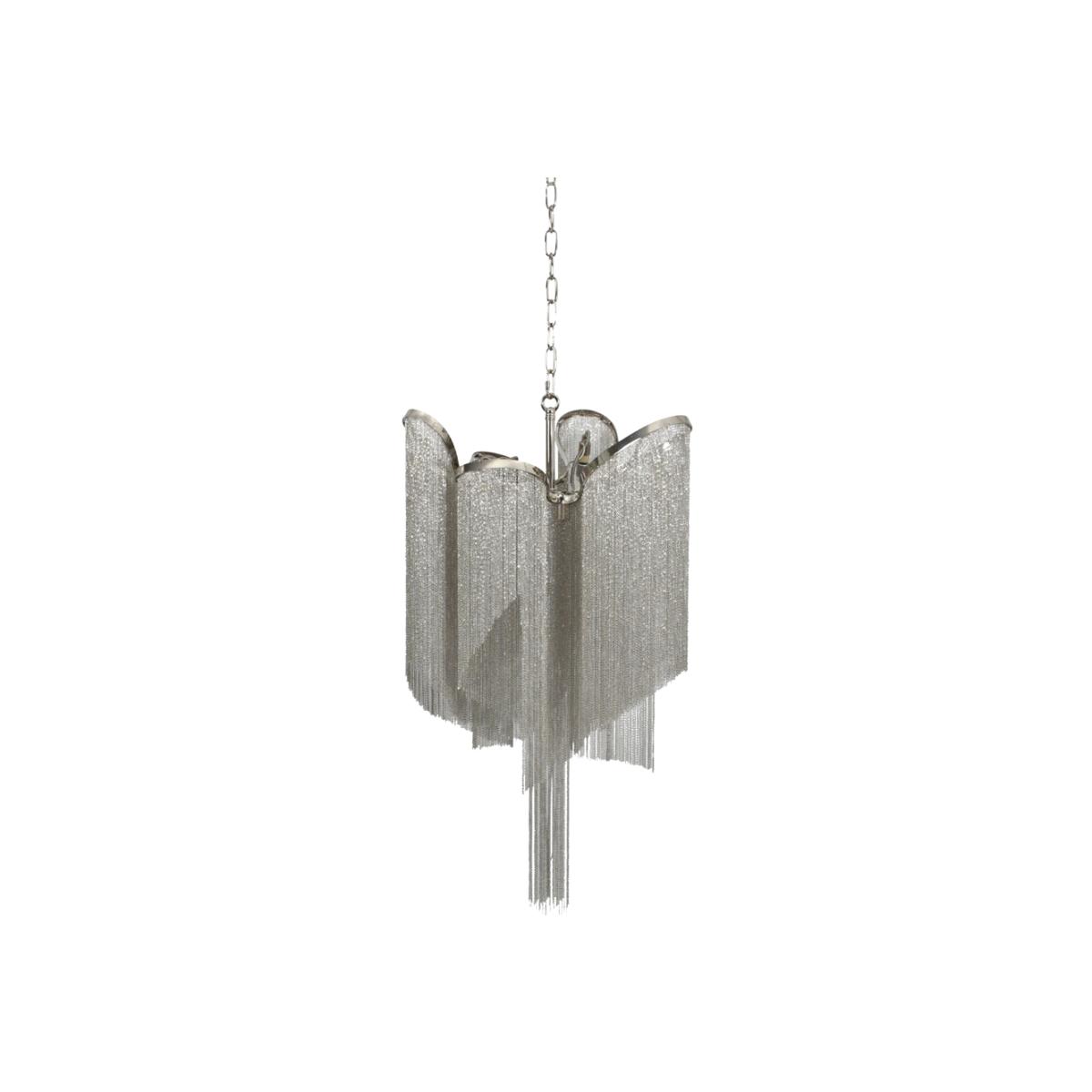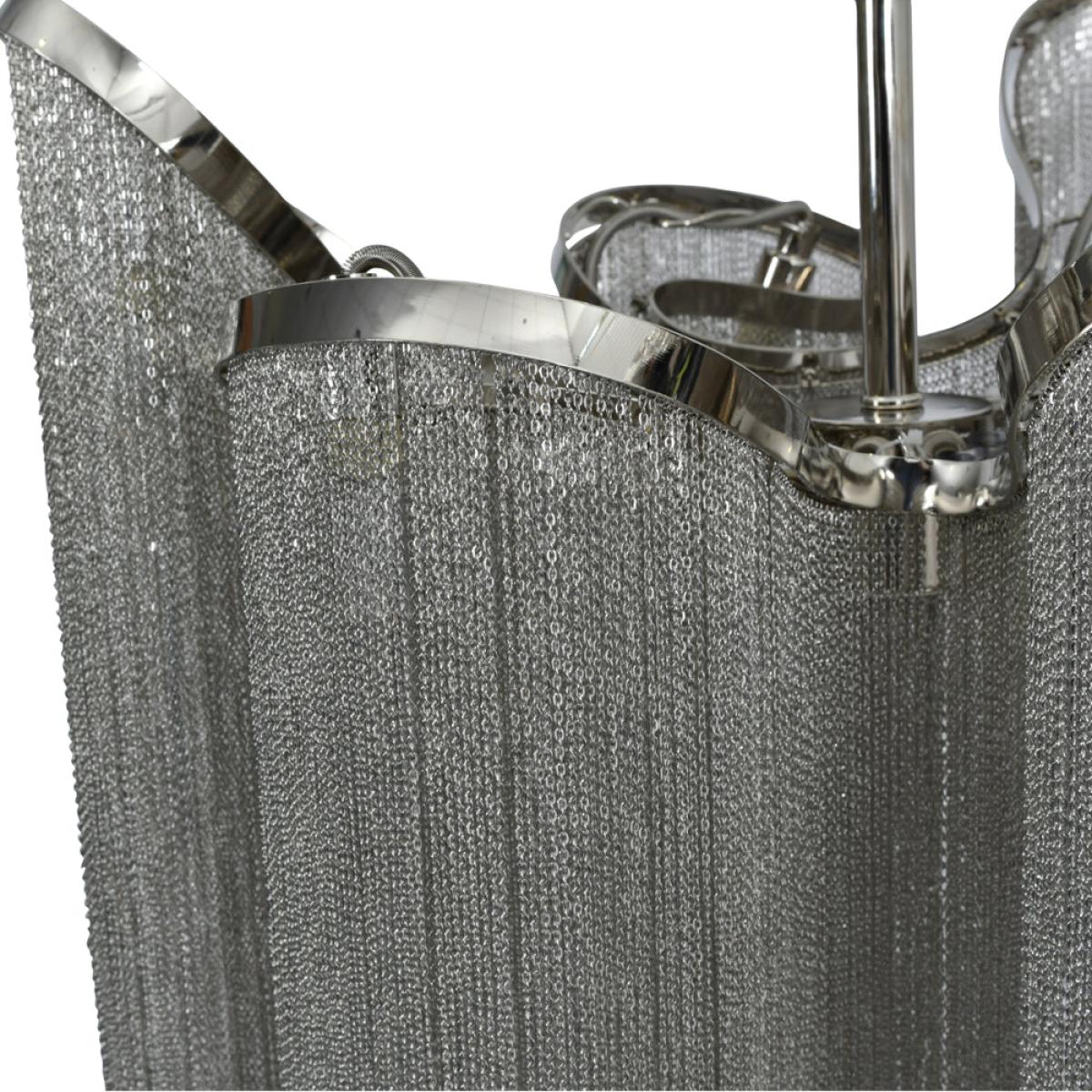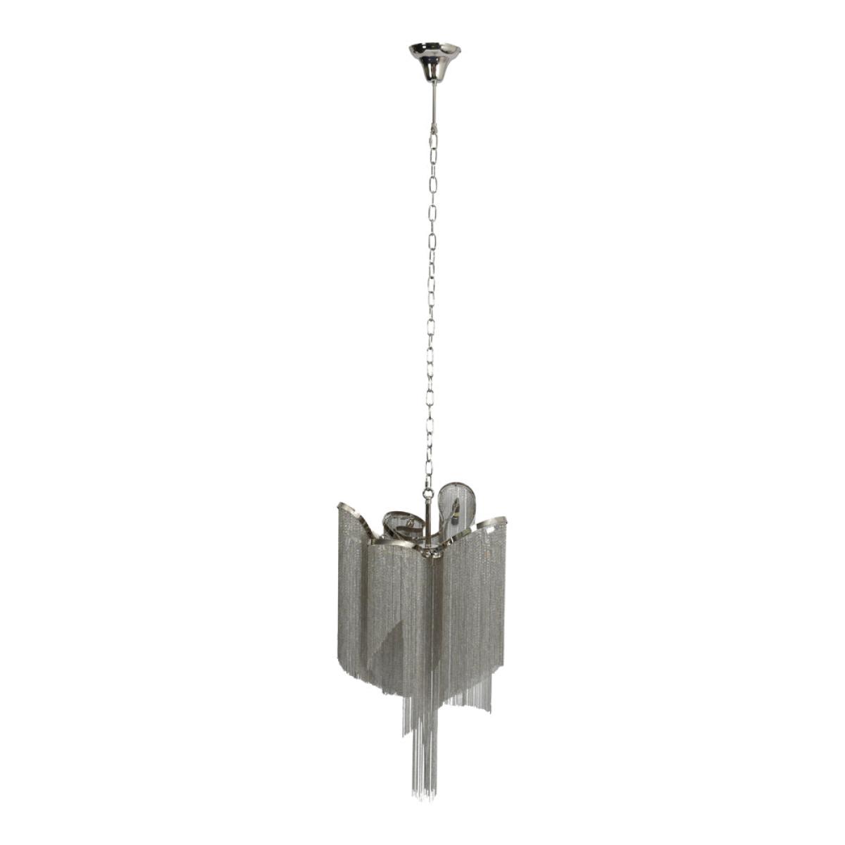 This stunning pendant lamp will certainly make a statement in any room. It’s clear that its eye-catching design is heavily influenced by the beauty of the Niagara Falls. The silver chain droplets a. View More. This stunning pendant lamp will certainly make a statement in any room. It’s clear that its eye-catching design is heavily influenced by the beauty of the Niagara Falls. The silver chain droplets are nickel plated and cascade down from what appears to be a floating frame. This clever design is enhanced by the use of six lights, which create a wonderful effect against the silver of the droplets. #. #The light pendant is 87cm high with a width and depth of 50cm each. It comes with 1m of chain and a matching ceiling rose and requires six G9 bulbs to create lighting magic.